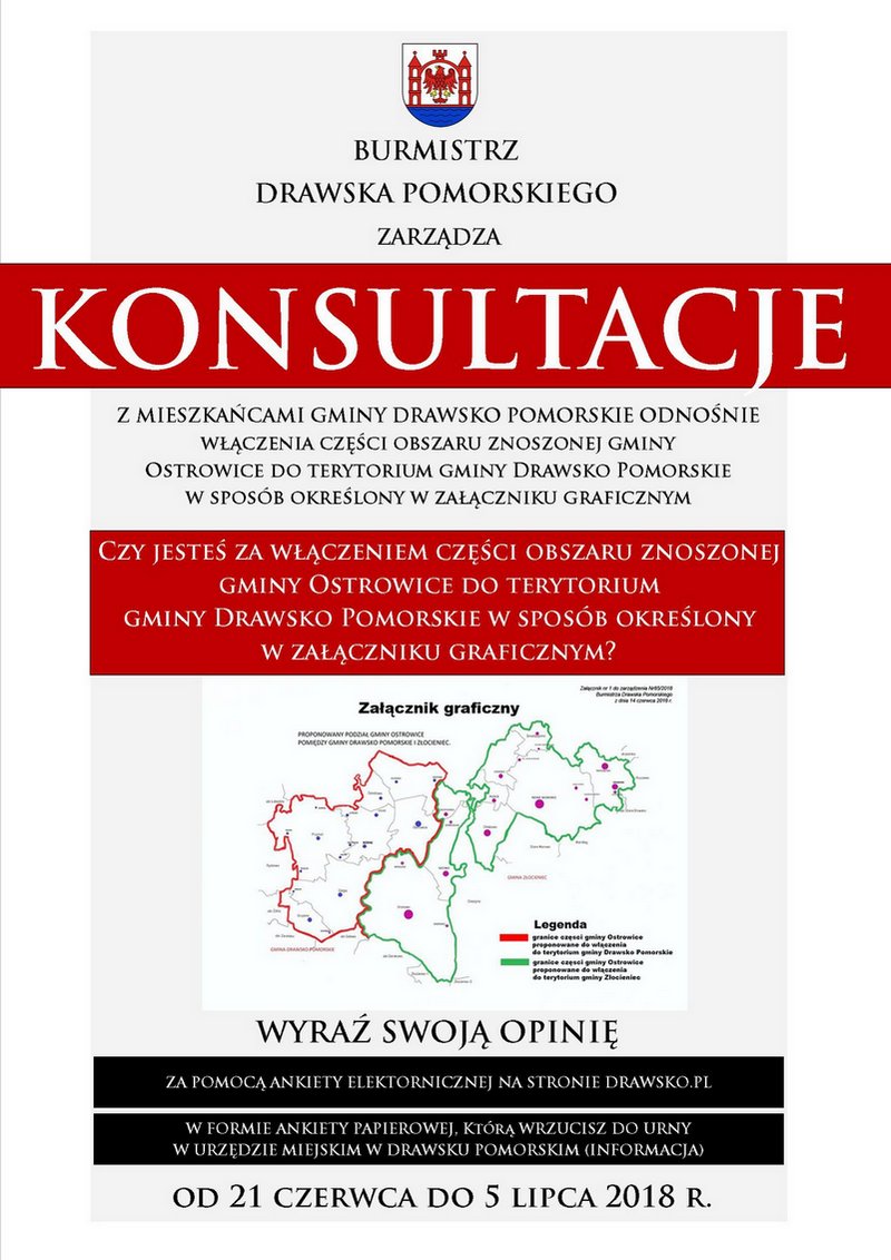 Mieszkańcy gminy Drawsko Pomorskie w anonimowej ankiecie odpowiadali na pytanie: „Czy jesteś za włączeniem części obszaru znoszonej gminy Ostrowice do terytorium gminy Drawsko Pomorskie w sposób określony w załączniku graficznym?”.