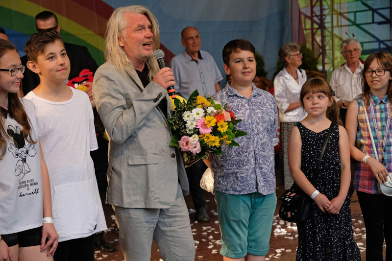 Jak na miejsce zabawy i wręczenia nagrody uhonorowany Brzdącem Jacek Rudnicki podziękował śpiewająco za to wyróżnienie dzieciom zebranym w amfiteatrze i w obecności przybyłych na uroczystość innych dorosłych Brzdąców docenionych tym tytułem w latach poprzednich. Był też okolicznościowy tort.