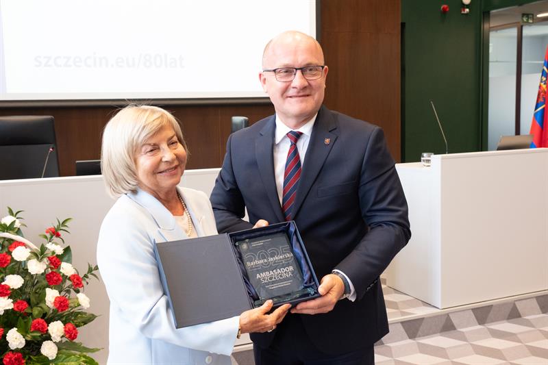 W piątek wręczono też tytuły Honorowych Ambasadorów Szczecina działaczce na rzecz osób z niepełnosprawnością intelektualną Barbarze Jaskierskiej oraz żeglarzowi Mirosławowi Lewińskiemu.