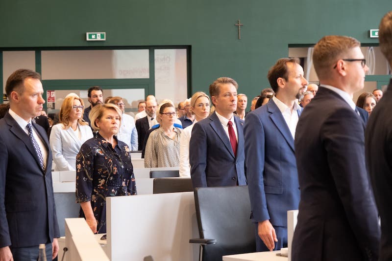 Paweł Bartnik (KO), przewodniczący Rady Miasta, na początku sesji przypomniał, że 5 lipca 1945, gdy niemieccy urzędnicy przekazywali władzę stronie polskiej, w mieście było zaledwie 1578 Polaków - wobec 80 tys. Niemców.