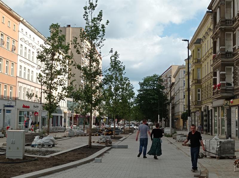 Przez miesiąc usychały na budowie: nieosłonięte przed słonecznym żarem i temperaturami nawet w cieniu sięgającymi ponad 28 stopni Celsjusza. Dopiero gdy niemal wszystkie straciły liście, zostały otoczone specjalną troską. Mowa o platanach z przebudowywanego śródmiejskiego odcinka al. Wojska Polskiego w Szczecinie, które znów się zazieleniły.