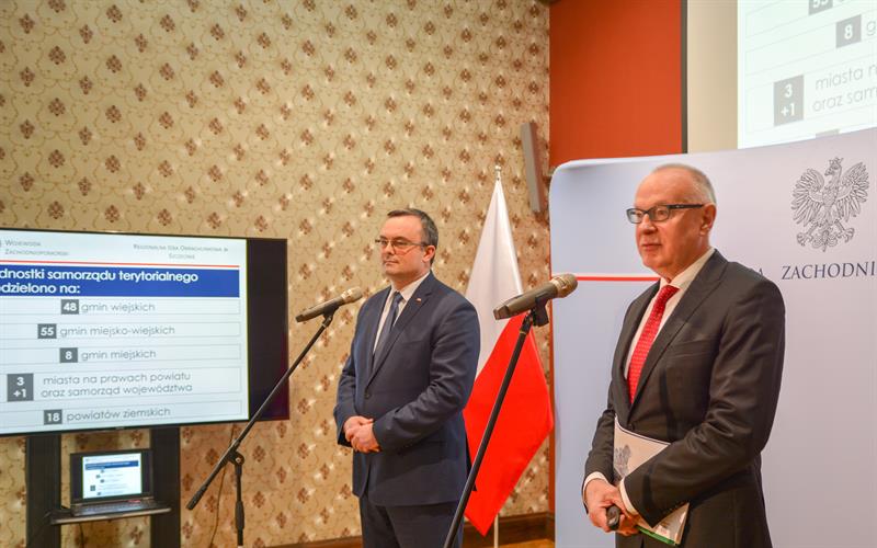 Na zdjęciu od lewej: Wojewoda Tomasz Hinc oraz Bogusław Staszewski, prezes RIO w Szczecinie, opowiadali o finansach w gminach naszego województwa.