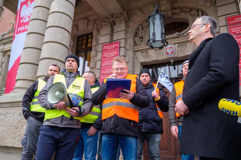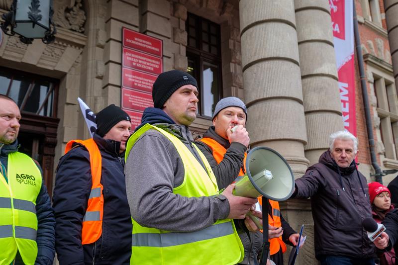 Rolnicy związani z Agrounią przyjechali w środę traktorami pod Zachodniopomorski Urząd Wojewódzki w Szczecinie, aby zaprotestować przeciwko polityce rządu. Chcieli zwrócić uwagę na kłopoty producentów żywności. Domagali się między innymi obniżenia cen nawozów sztucznych oraz pomocy finansowej w związku z klęską suszy. Przedstawiciele ruchu Michała Kołodziejczaka protestowali także w innych polskich miastach.