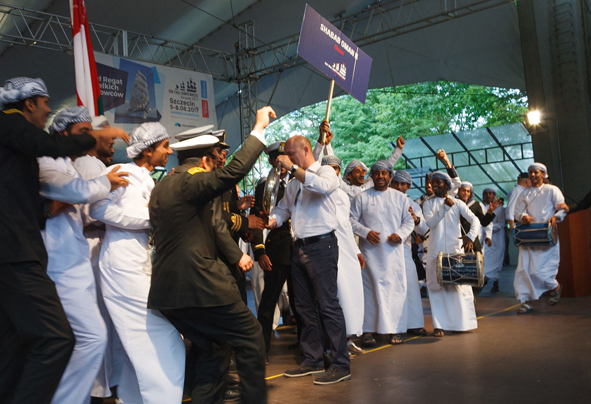 Entuzjazm wśród szczecinian i turystów wzbudziła barwna i głośna parada załóg, która przeszła przez centrum miasta do Teatru Letniego. Paradzie przewodziła orkiestra wojskowa oraz żeglarze ze statku Shabab Oman II, wśród których wyrożniali się kobziarze.
