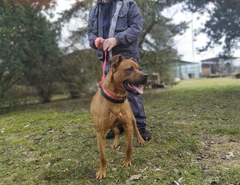 Ajax (35/21) ma atletyczną posturę, ale to skory do zabawy niepoprawny łasuch o gołębim sercu. Ludzi kocha, a innych zwierząt się boi, więc ich bliskości nie toleruje. Fot. Schronisko
