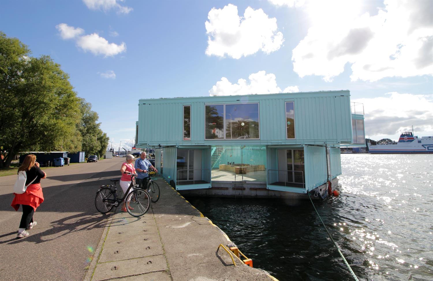 Ta konstrukcja zacumowała przy Wybrzeżu Władysława IV w Świnoujściu i przez kilka dni wywoływała żywe zainteresowanie mieszkańców kurortu oraz turystów. Stojące na betonowym pontonie kontenery to prototyp pływającego akademika dla uczących się w Kopenhadze studentów. We wtorek (6 sierpnia) po południu – holowany przez Argusa – popłynął do stolicy Danii.