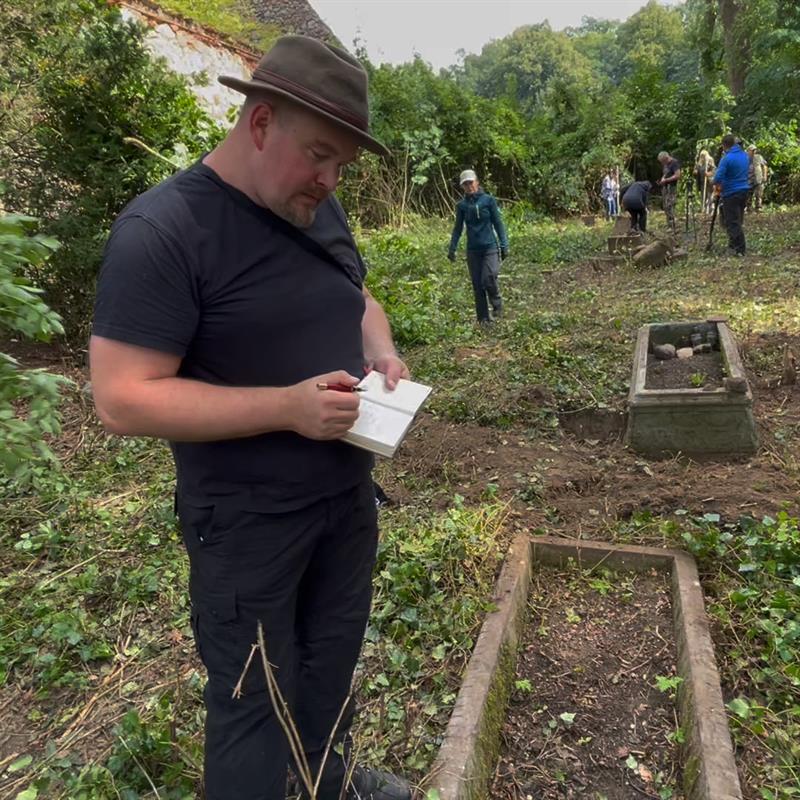 - W trakcie ostatniej wyprawy, a właściwie dnia prac ewidencyjnych i porządkowych, na wyciętym z krzaków terenie odnaleźliśmy kolejne nagrobki oraz poskładaliśmy z fragmentów górną część płyty Nelly von Blumenthal, przymocowaną niegdyś do epitafium wyeksponowanego na ścianie kościoła. Właściwie Cornelia (Nelly) Kayser urodziła się 19 sierpnia 1854 r. w Hamburgu. Gdzie w 1873 r. wyszła za mąż za Vallego Carlo Wernera von Blumenthal. Byli właścicielami majątków w Pargowie i Stafelde. Wciąż poszukujemy płyty nagrobnej Vally’ego von Blumenthall, który został pochowany 15 grudnia 1919 r. właśnie w Pargowie.