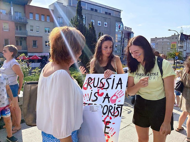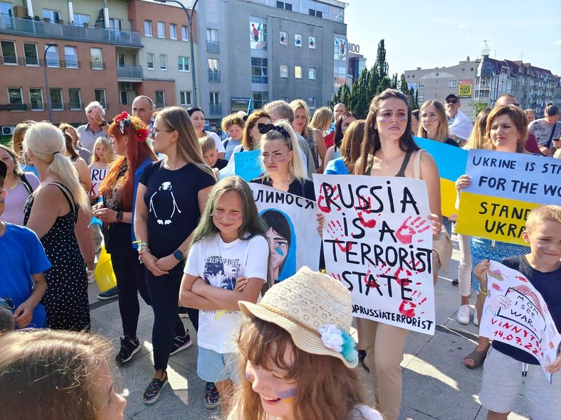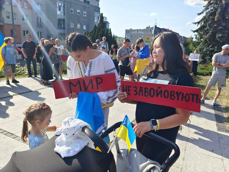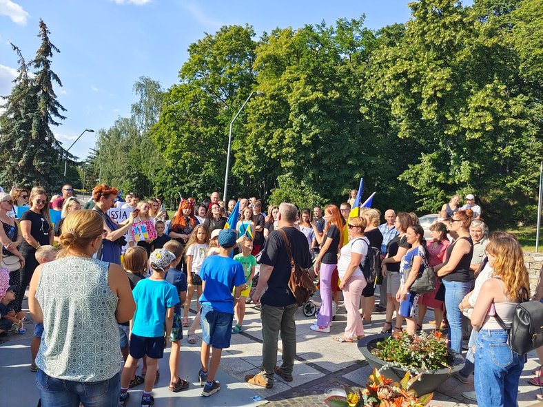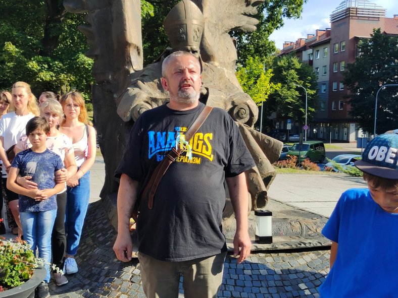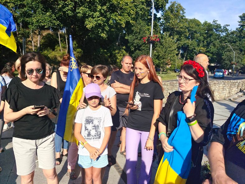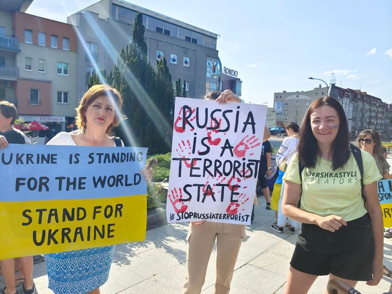 - Zebraliśmy się tutaj, by zaprotestować przeciwko barbarzyństwu Rosjan - mówił dziś Roman Zahoroda ze Związku Ukraińców w Polsce, koła w Stargardzie. - Wyrażamy swój sprzeciw przeciwko niehumanitarnemu sposobowi prowadzeniu wojny, mordom na ludności cywilnej, chcemy też wspomnieć bohaterów wojennych, obrońców Mariupola w bezczelny sposób zamordowanych w Ołeniwce. Rosjanie nie przestrzegają żadnych zasad ani prawa międzynarodowego. Nie respektują praw boskich czy ludzkich. Ukraina walczy z potworem. Dla nich celem jest wszystko co nasze: pociągi, karetki pogotowia, nawet Czerwony Krzyż staje się dla nich celem. To nie są żołnierze. To bandyci.