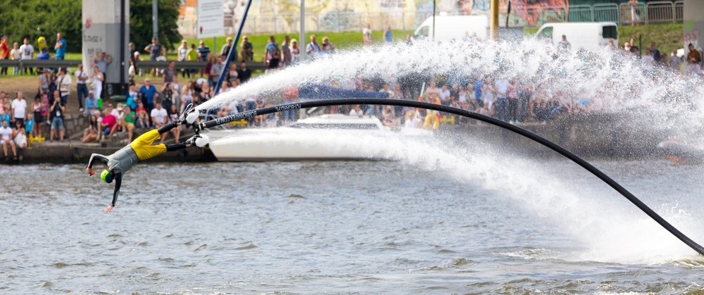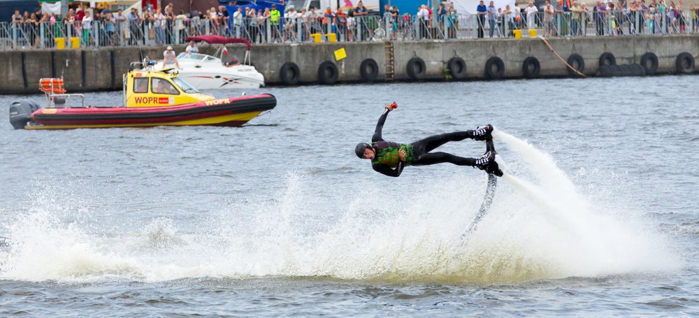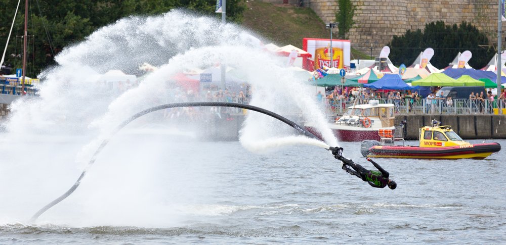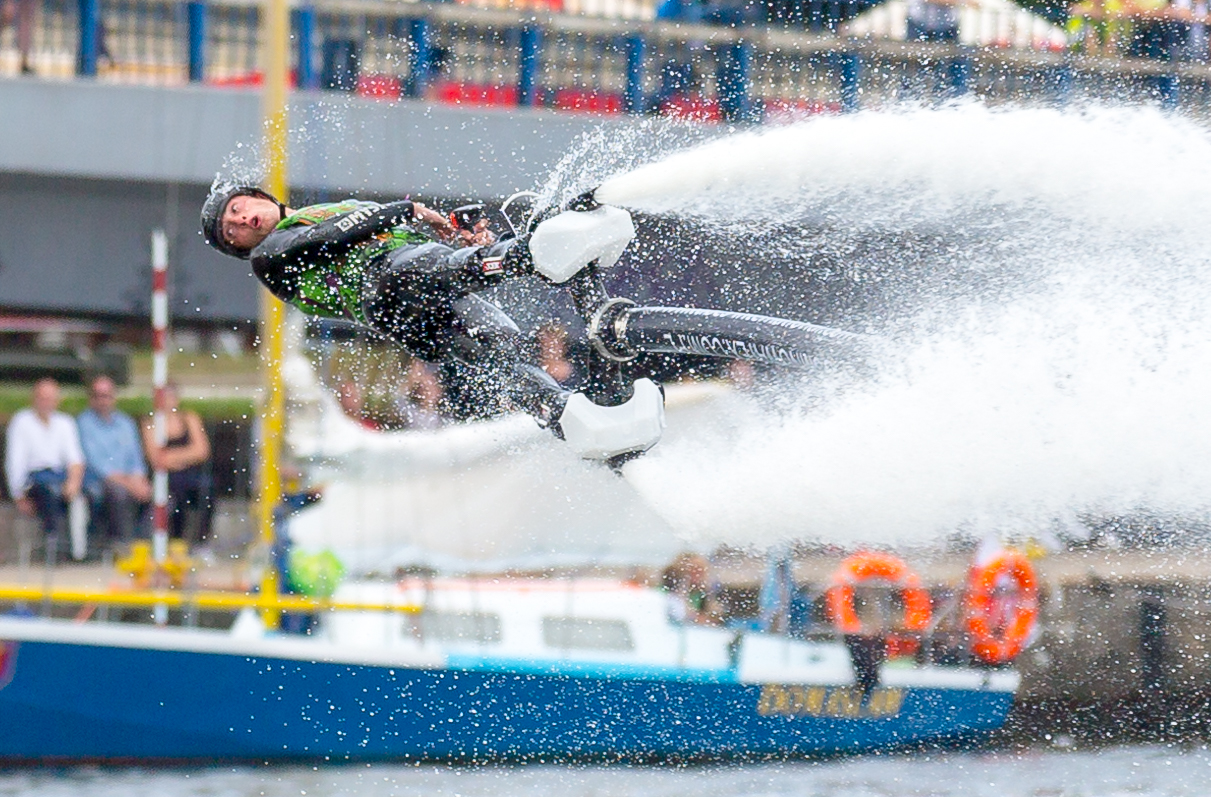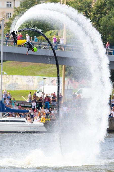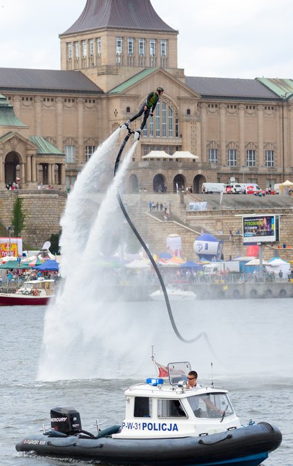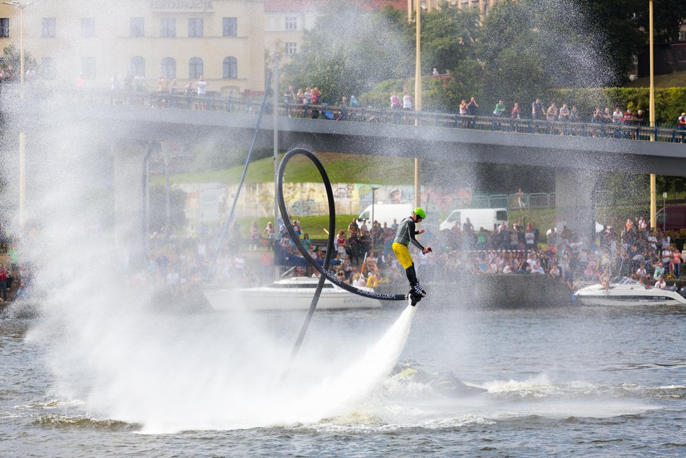 Szczecinianie i turyści uczestniczący w turnieju Pyromagic na Wałach Chrobrego mogli oglądać efektowny turniej pokazowy w hydro-odrzutowanym lataniu nad wodą - Flyboard. W zawodach wzięli udział zawodnicy z Polski i z zagranicy. Flyboard to element imprezy Watershow. Kolejnym były skoki do wody z dużych wysokości - High Diving.