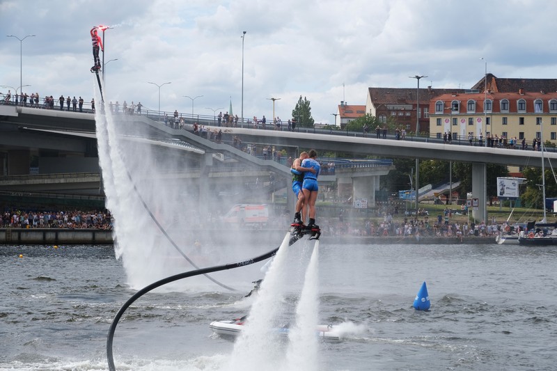 Trwa Water Show Szczecin, czyli widowiskowe akrobacje na wodzie. To jedno z wydarzeń towarzyszących tegorocznym pokazom ogni sztucznych Pyromagic.