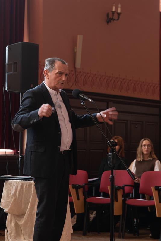 Aktor, choć na co dzień gra na deskach warszawskich teatrów, odwiedził Szczecin – rodzinne miasto i spotkał się z uczniami I Liceum Ogólnokształcącego, do którego sam przed laty uczęszczał. Zaprezentował monodram „Życiorys”, w którym poprzez utwory Zbigniewa Herberta opowiada o życiu człowieka.
