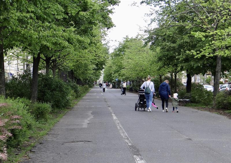 Na wyglądzie powinna też zyskać część środkowa arterii, która pełni funkcję deptaka, ciągu spacerowego z wytyczonym odcinkiem pasa trasy dla rowerów ze szpalerami drzew i krzewów i rabatami kwiatów z akcentami rzeźbiarskimi po obu jego bokach, oddzielającymi go z każdej strony od jezdni. Na odcinku między ul. Mieczysława Niedziałkowskiego i Wacława Felczaka zieleń zostanie przesunięta ze środka alei na boki, tak jak jest dotąd na pozostałych odcinkach. Po przebudowie pojawią się nowe stojaki rowerowe, ławki, kosze na śmieci oraz nasadzenia krzewów. Nawierzchnie nowych chodników zostaną wykonane z dużych płyt granitowych, a ścieżka rowerowa w tym samym śladzie co obecnie z masy mastyksowo-grysowej.