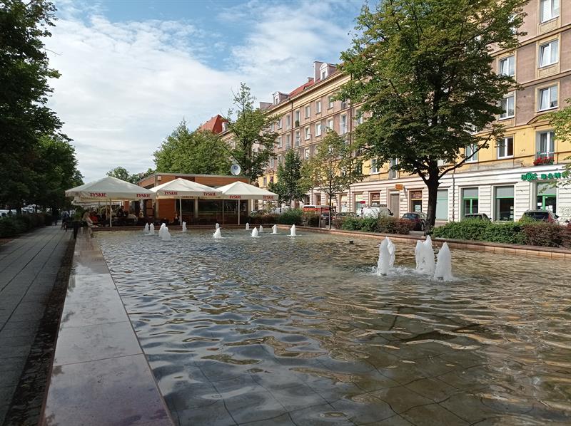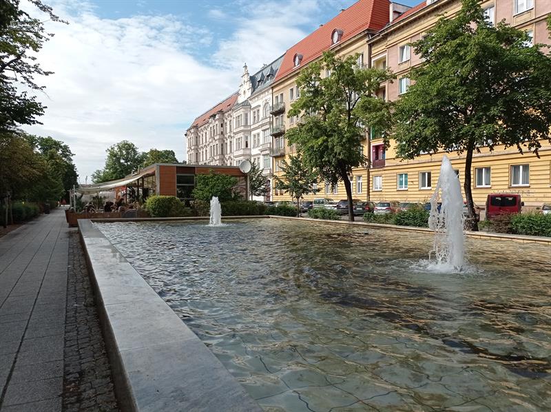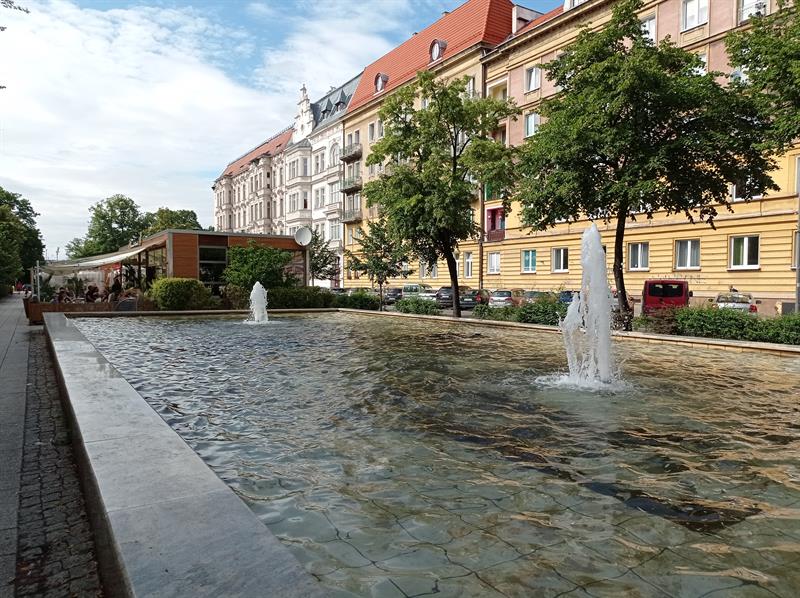 Na tzw. aleję fontann powróciły wodne pióropusze. Mimo że ich baseny są dość siermiężne, to spełniają swą podstawową funkcję: znacząco ochładzają okolicę. Co w czas ekstremalnych upałów w mieście ma znaczenie. Nic dziwnego, że w ich otoczeniu chętnie wypoczywają zarówno szczecinianie, jak i turyści.