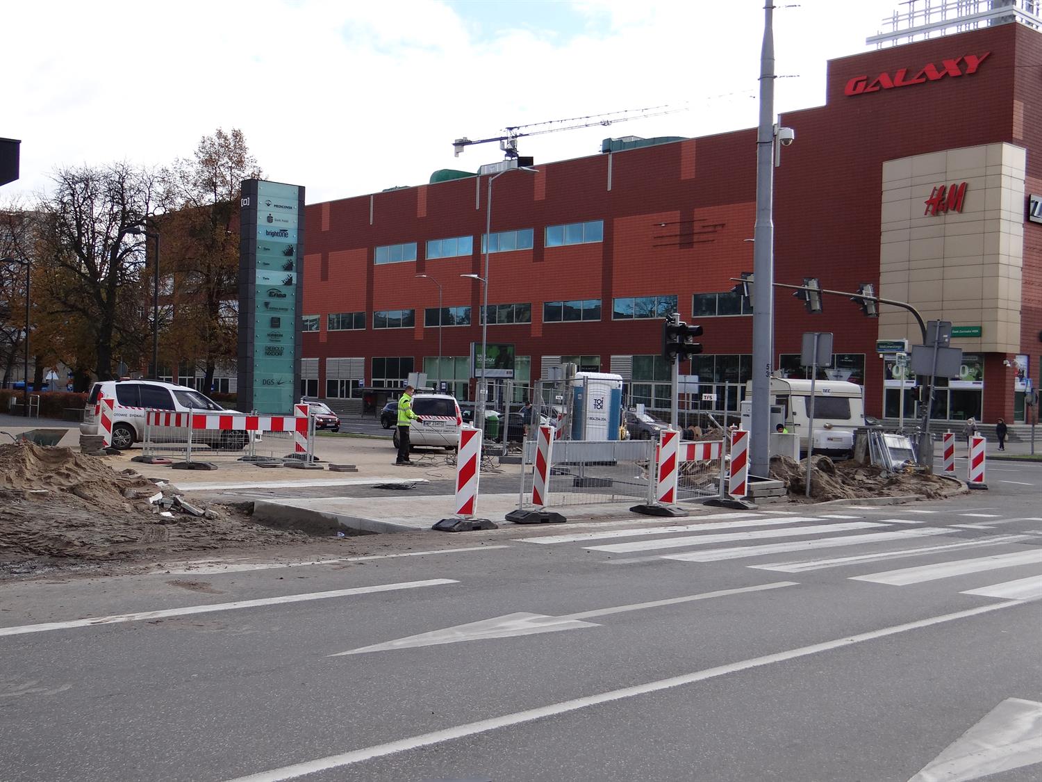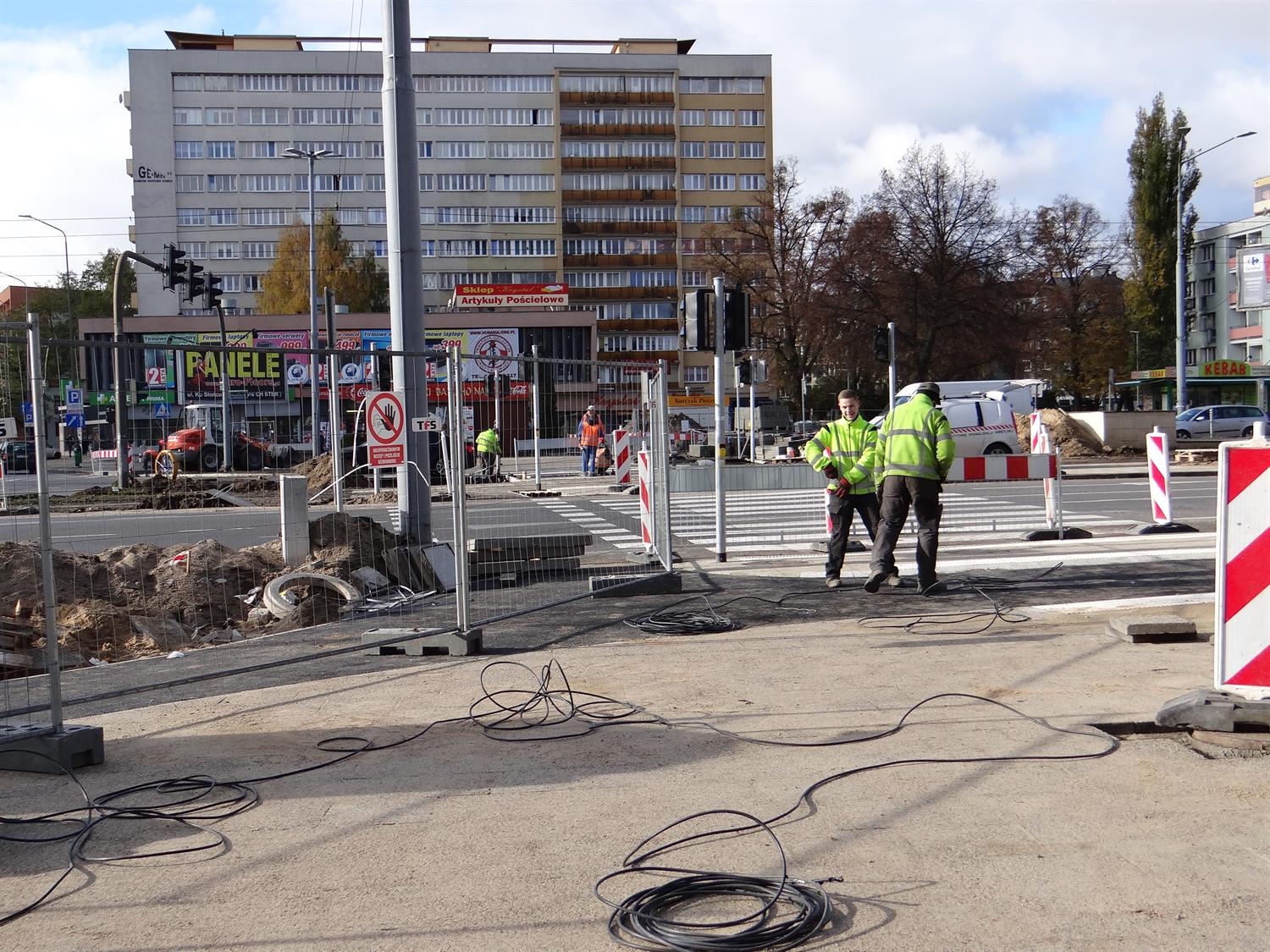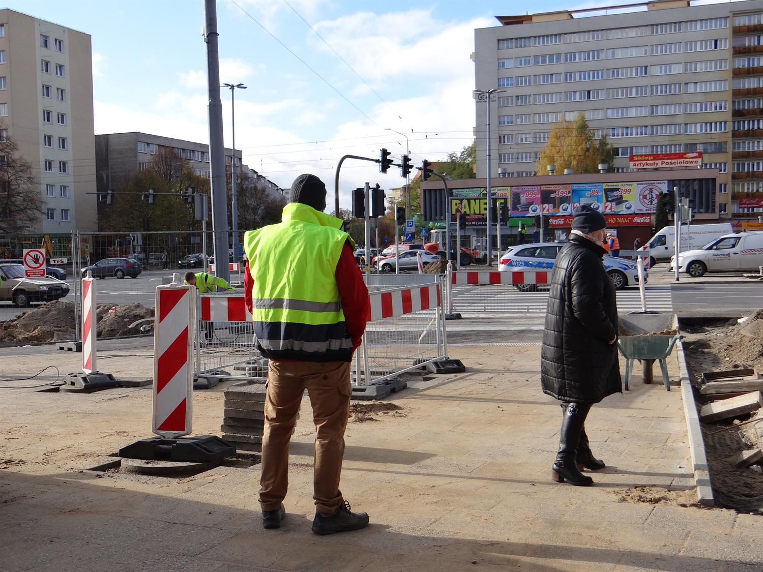 Są już pasy na jezdni, fragmenty nowych dojść chodnikami, przejście przez tory,. Trwa montaż sygnalizatorów. Powoli wyłania się nowy kształt rejonu całego skrzyżowania i obraz tego, co będzie po tych przeobrażeniach, których finał powinien nastąpić do końca tego roku.