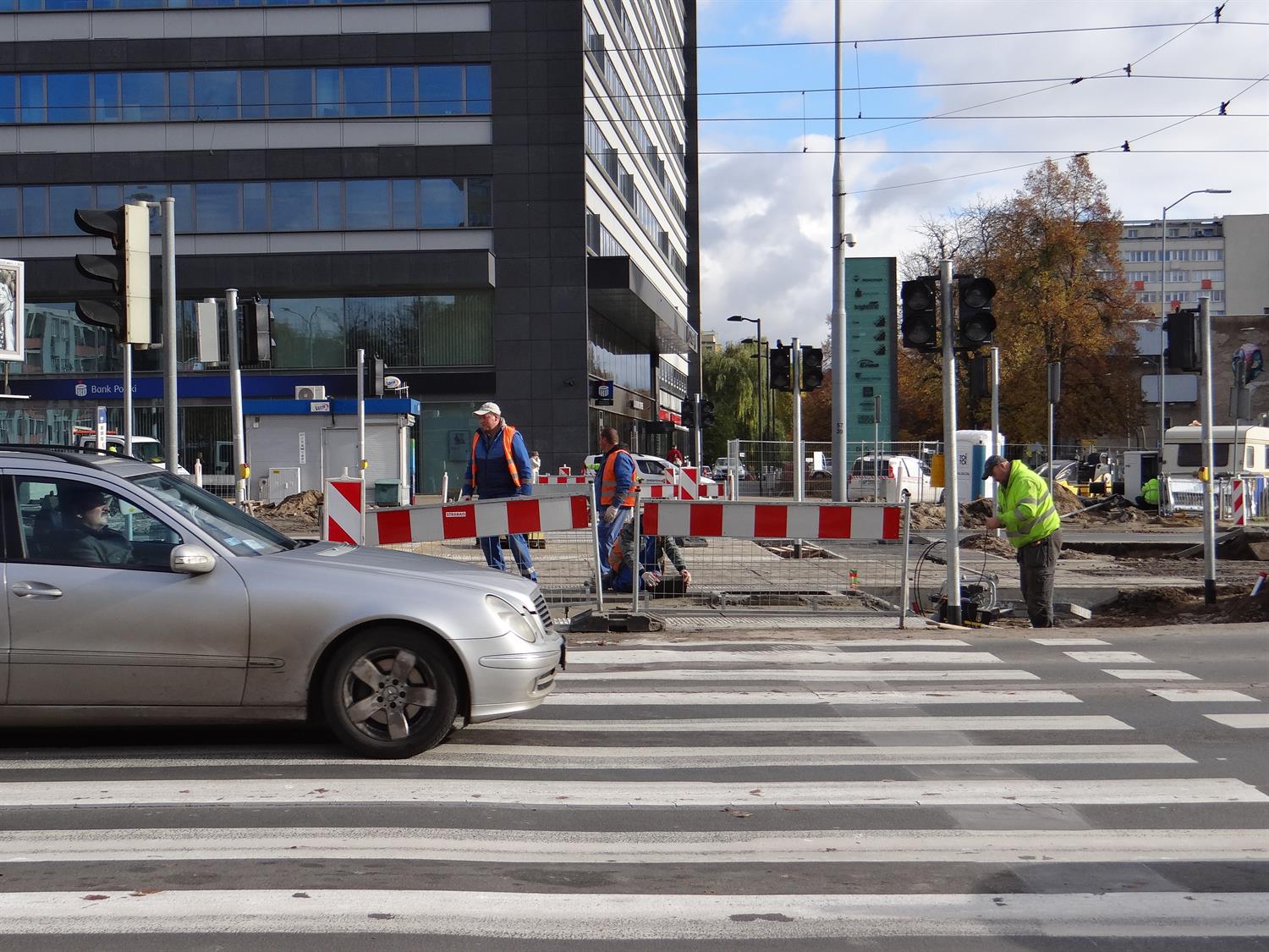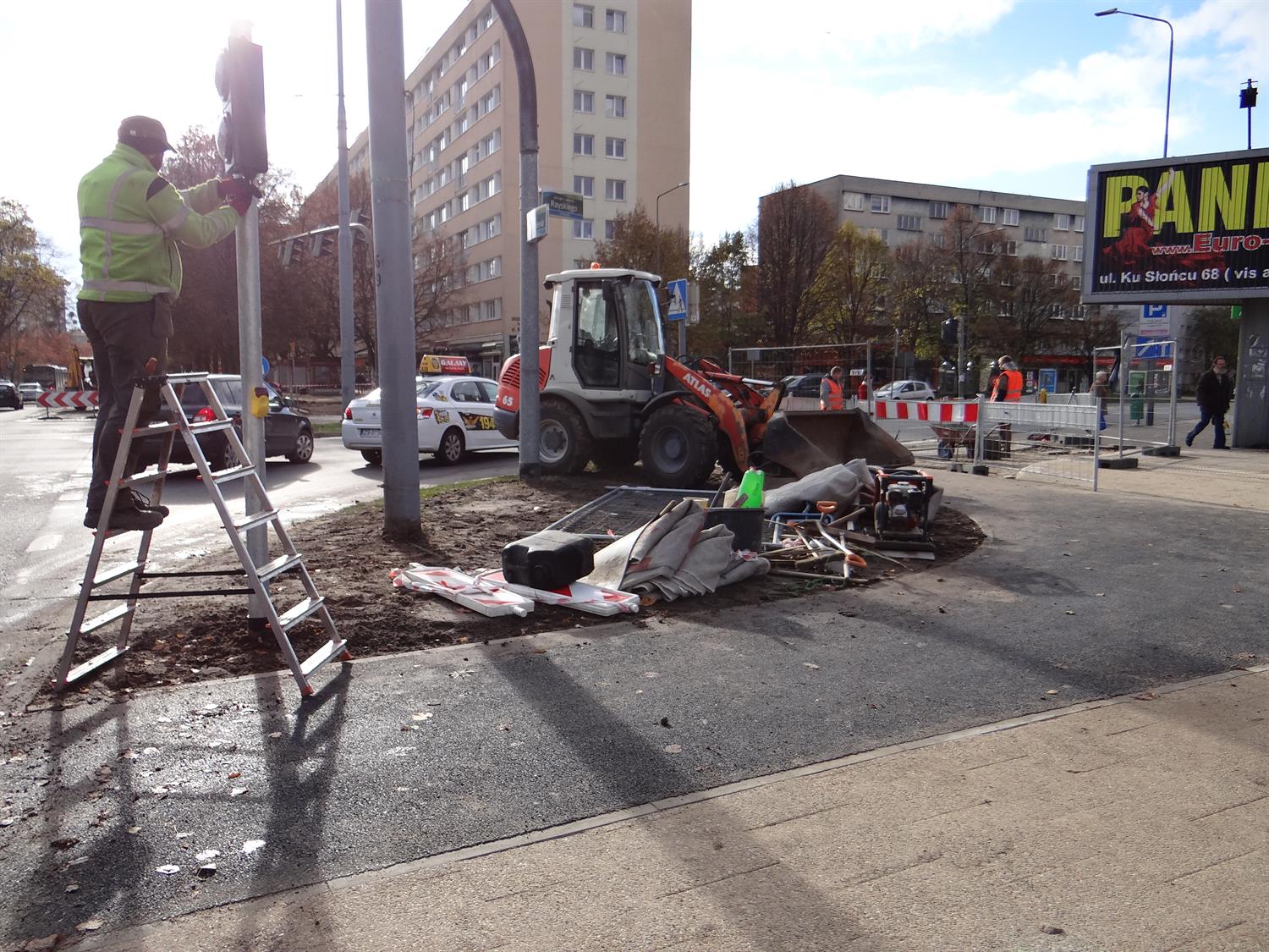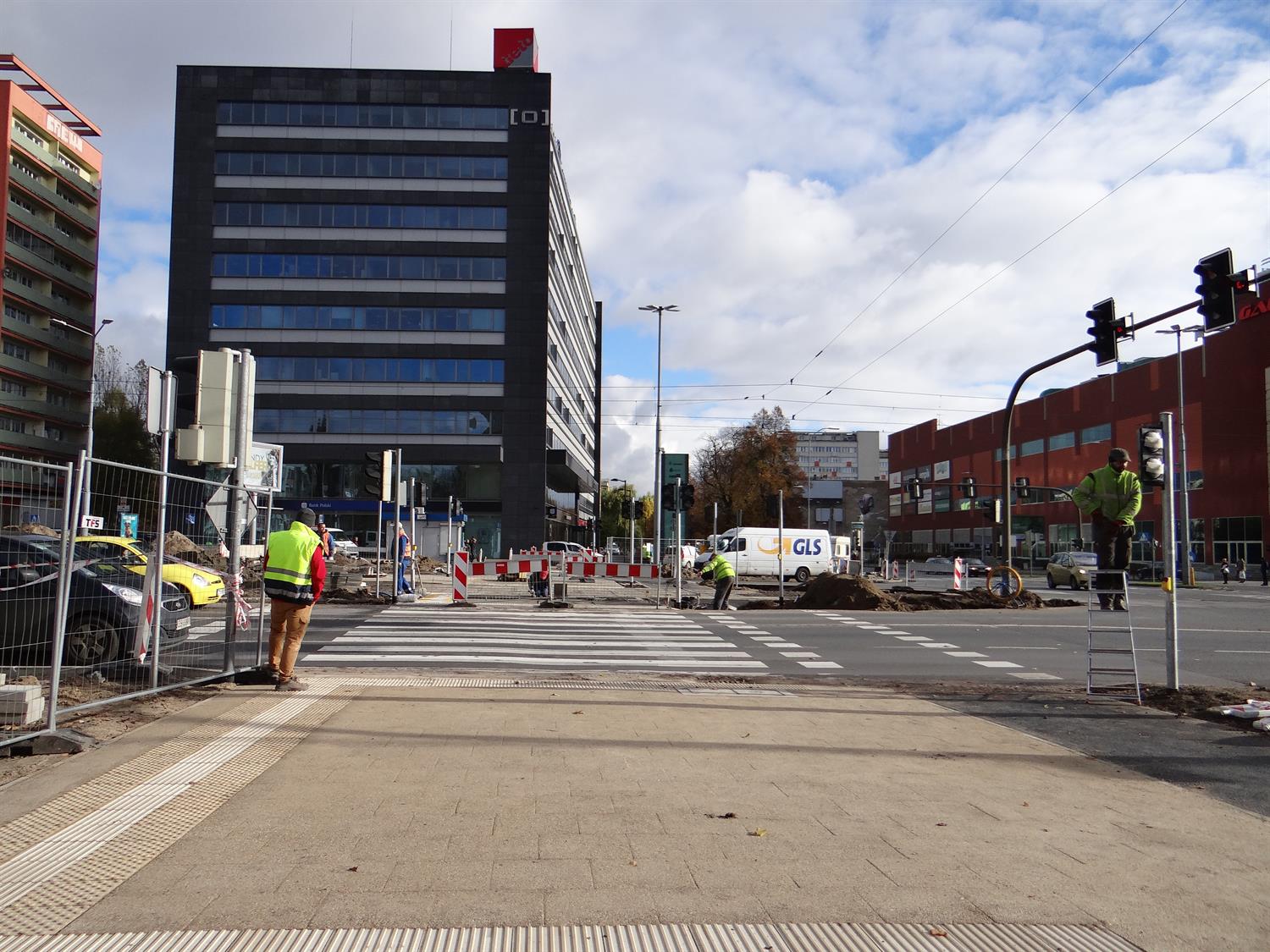 Są już pasy na jezdni, fragmenty nowych dojść chodnikami, przejście przez tory,. Trwa montaż sygnalizatorów. Powoli wyłania się nowy kształt rejonu całego skrzyżowania i obraz tego, co będzie po tych przeobrażeniach, których finał powinien nastąpić do końca tego roku.