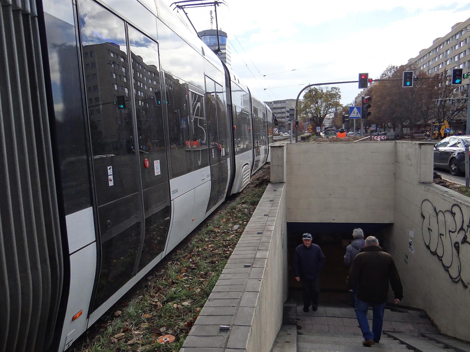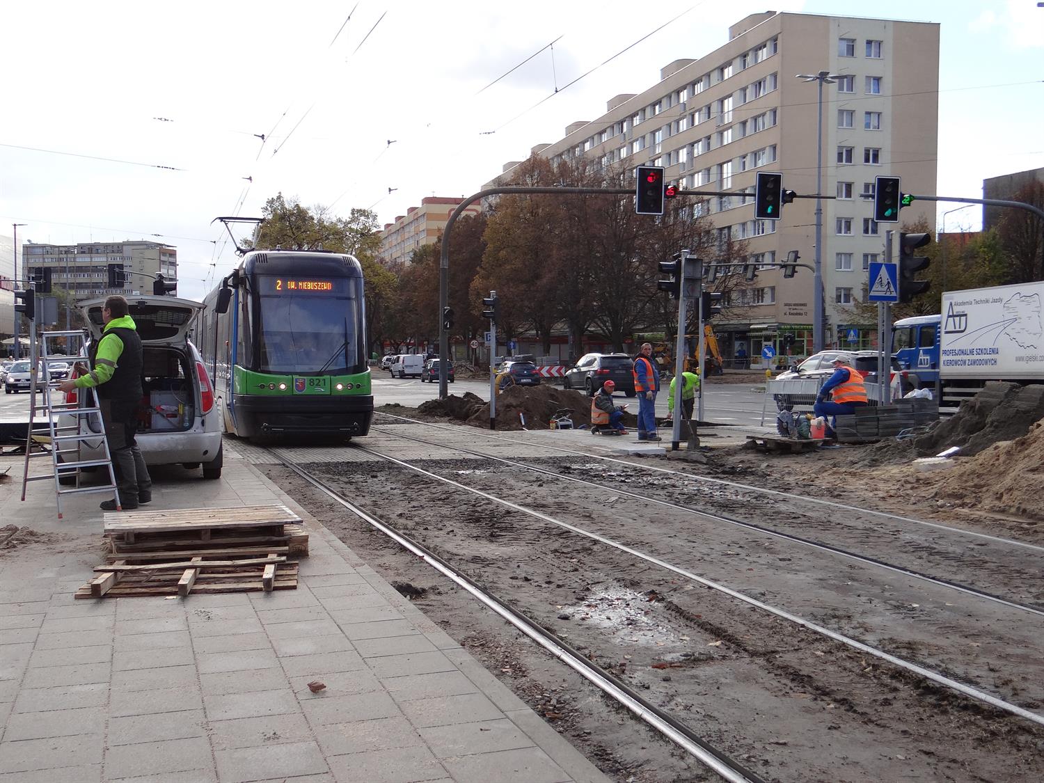 Urządzony już został przez drogowców w tym miejscu chodnik prowadzący do nowych pasów w obrębie przejścia wyznaczonego przez obie nitki jezdni przedzielone pasem torowiska. Z drugiego wejścia/zejścia do i z likwidowanego tunelu na peron w kierunku placu Rodła i dalej Bramy Portowej pasażerowie jeszcze mogą korzystać. I ono wkrótce zostanie zamknięte - po uruchomieniu nowych, naziemnych przejść/dojść na pas torowiska pośrodku alei. Trwają roboty brukarskie przy układaniu chodników, budowie nowych nowych fragmentów chodników po obu stronach alei, który powstały w miejscu dwóch zasypanych dotąd zejść do tunelu. Dwa pozostałe umożliwiają jeszcze przejście podziemiem z jednej strony ulicy na drugą . Chodniki zbudowane są m.in. z płytek, które - w założeniu - powinny ułatwiać poruszanie się osobom mającym problemy ze wzrokiem. Są słupy z sygnalizatorami i trwa teraz podłączanie instalacji sygnalizacji świetlnej. Nowością są fragmenty nowych dróg rowerowych i przejazdów - łączące te już istniejące i z nowymi urządzanymi wraz z przebudową od ul. Rayskiego w stronę placu Rodła.