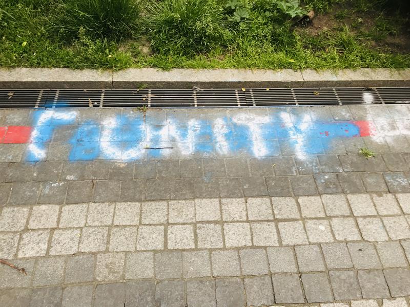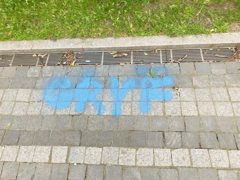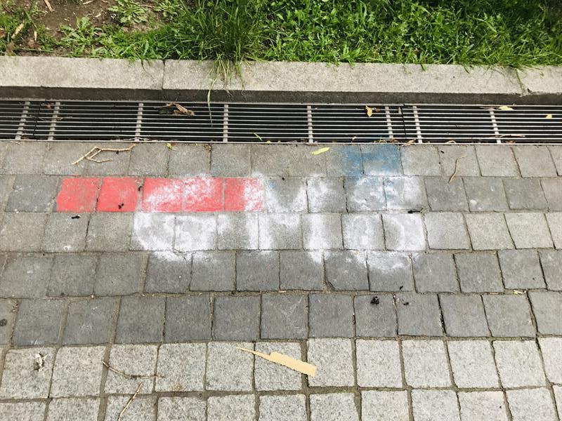 Napisy wykonane białą i niebieską farbą od blisko dwóch tygodni trwają na nawierzchni dawnej alei kwiatowej. Szpecąc ją. Na co zwróciła uwagę także radna Dominika Jackowski i do prezydenta Szczecina złożyła interpelację w tej sprawie.
