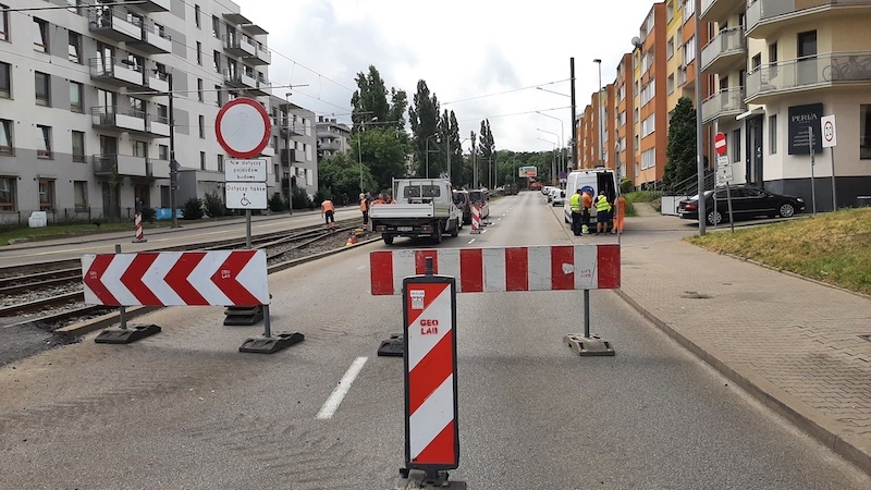 Zamknięta aleja Powstańców Wielkopolskich od strony placu Szyrockiego. Fot. Tramwaje Szczecińskie
