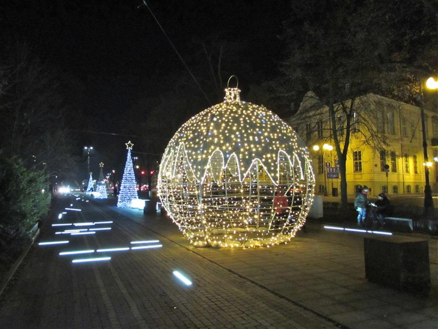 W sobotni wieczór spacerowicze podziwiali świąteczne oświetlenie w alei Kwiatowej. Bombka jest otwarta, więc niektórzy chętnie korzystali z okazji i wchodzili do jej środka, pozując do zdjęć. (ek)