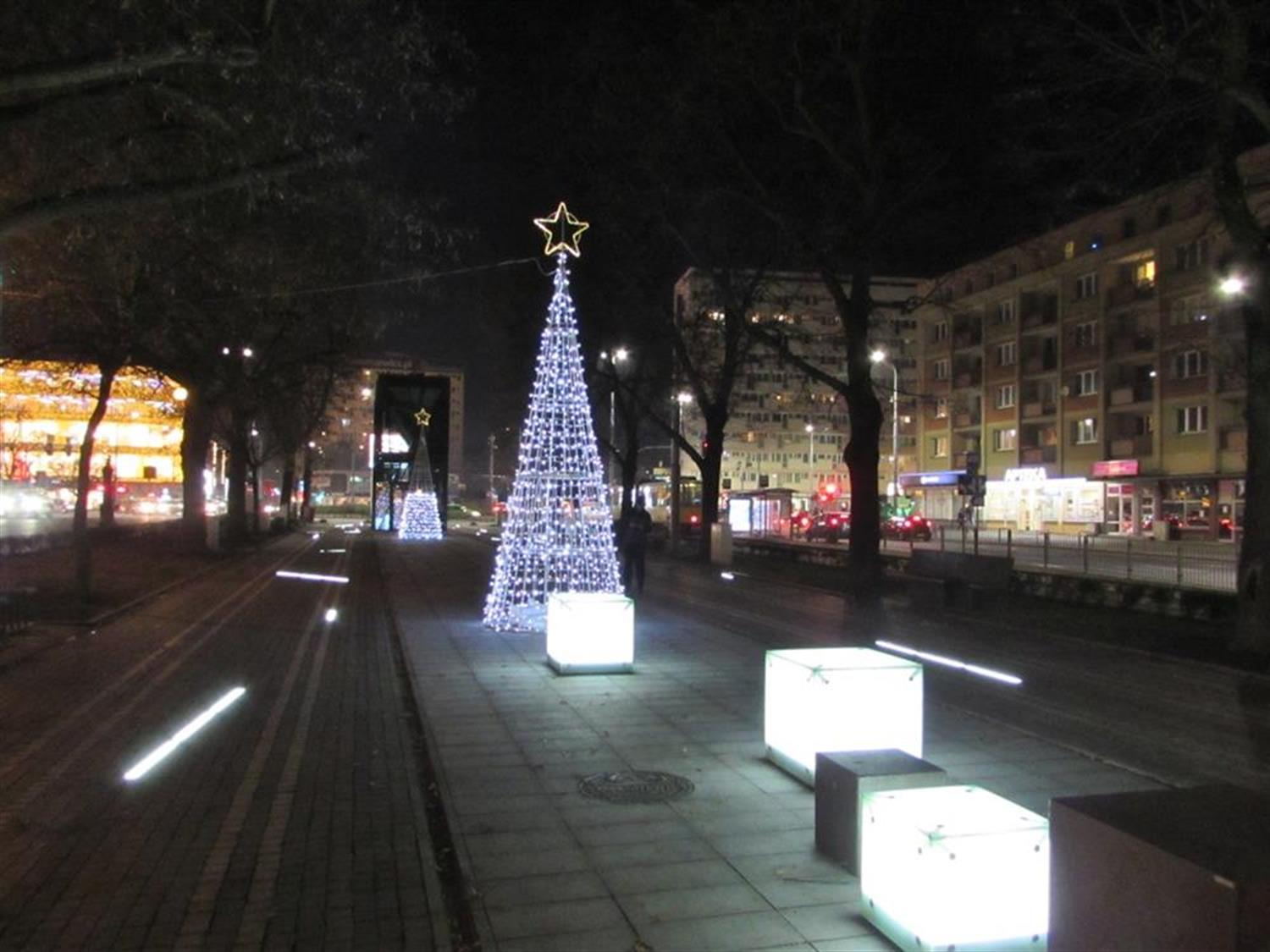 Jak już informowaliśmy, na ulicach Szczecina przybywa dekoracji i iluminacji. To znak, że do świąt Bożego Narodzenia coraz bliżej. Montowane w piątek (2 grudnia) w alei Kwiatowej LED-owe choinki i duża bombka już świecą.