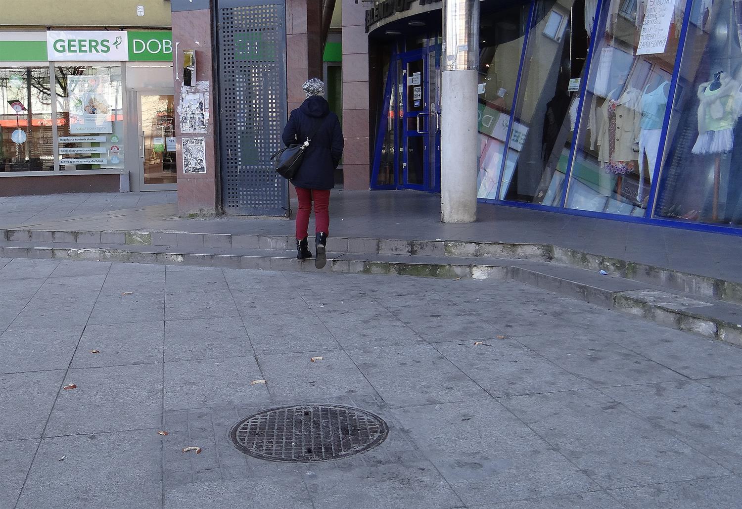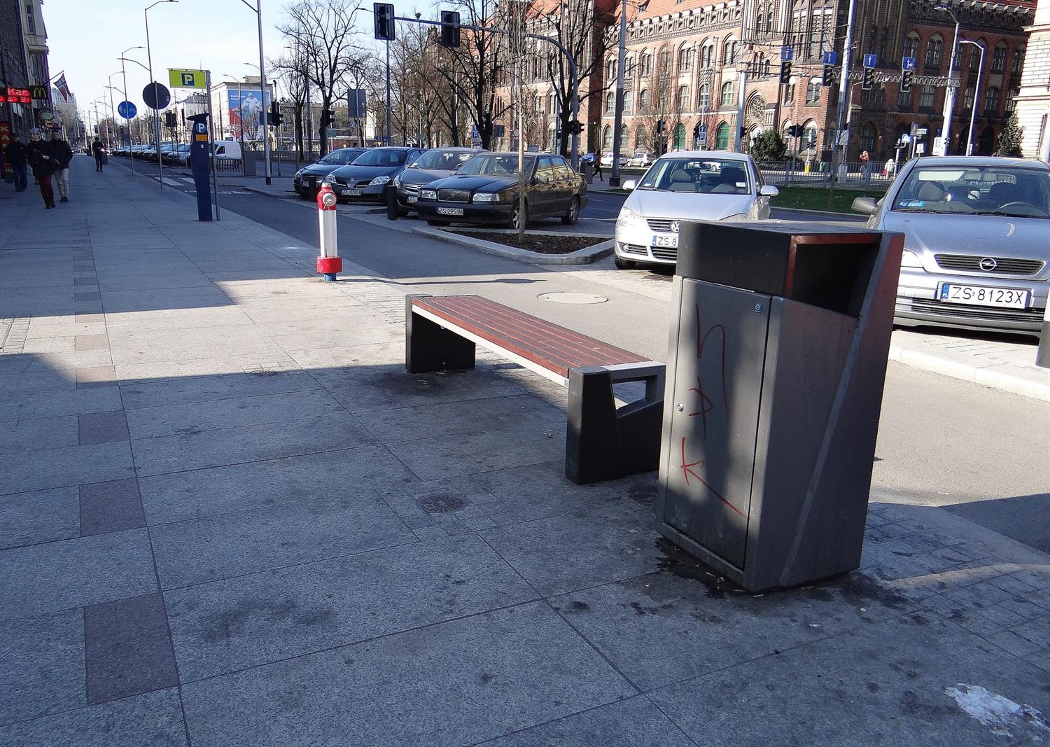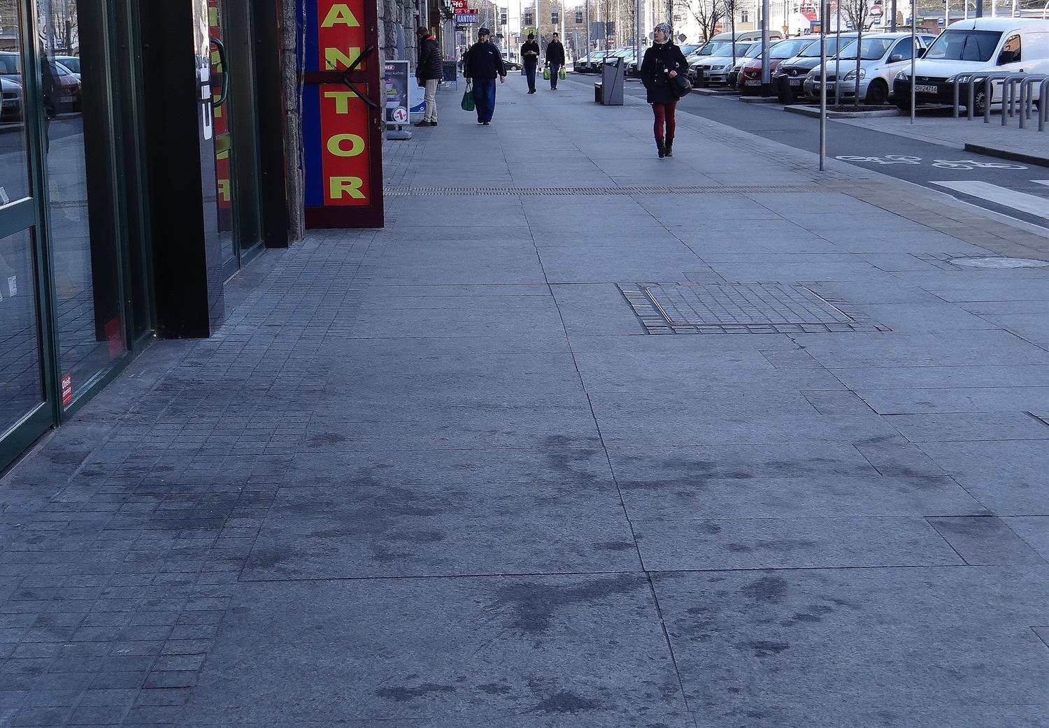 Płytki chodnikowe na całej długości traktu w centralnej części miasta od Bramy Portowej do pl. Żołnierza Polskiego zasmarowane, w plamach. Swoim wyglądem, a dokładnie brudem odstraszają nowe kubły na odpadki, „ozdobnione" wszelakim ulepkiem z rozlanych napojów, resztek fastfoodowego żarcia i nie tylko rewiry, gdzie ustawiono ławeczki. Tłuste plamy z wyciekających instalacji parkujących samochodów na brukowanej nawierzchni i krawężnikach wokół obrzeży klombów z młodymi drzewami na nowym pasie postoju.