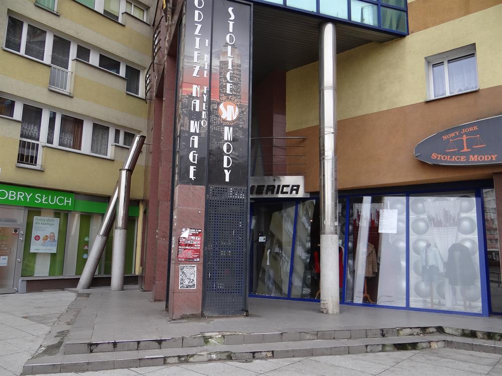 Z drugiego końca, od pl. Żołnierza Polskiego, wieżowiec z podobną „ozdobą" w parterze. Szyldy sugerują jedno, a to co pod nogami może sprawić, że zwabiona na fatałaszki - a dokładniej na „odzież na wagę" - klientela najpierw zaliczy „orła" i wybije sobie zęby na tym obskurnym „wybiegu" przed sklepową witryną, czyli na wyszczerbionych schodkach z odpadającymi kafelkami. Wejście do tej stolicy mody przy pl. Żołnierza Polskiego raczej odstrasza, niż przyciąga w tym stanie rzeczy.