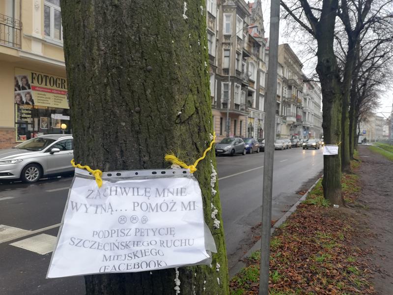 „W dobie kryzysu klimatycznego, przegrzania ziemi, zamiast dać prymat zielonej infrastrukturze, budować zielone torowiska, sadzić drzewa - hołdują infrastrukturze szarej: betonują, asfaltują i wycinają nam drzewa" - przekonuje Społeczna Straż Ochrony Zieleni Szczecina i zachęca szczecinian do udziału w proteście na pl. Szarych Szeregów. We wtorek (14 stycznia) - w obronie drzew zagrożonych przez inwestycje.