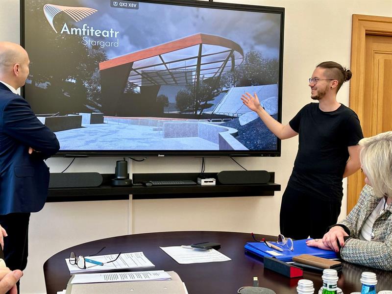 Nowoczesny, komfortowy, funkcjonalny i przyjazny dla osób starszych i niepełnosprawnych – taki będzie amfiteatr w Stargardzie. Zadaszona i oświetlona scena o kształcie sześciokąta ma mieć ponad 540 mkw. powierzchni. Na widowni będzie mogło zasiąść prawie 4 tysiące osób. Projekt przewiduje też utworzenie komfortowych miejsc dla widzów z niepełnosprawnościami. Na terenie zmodernizowanego amfiteatru pojawią się stojaki na rowery, kosze na śmieci i dodatkowe ławki na koronie. Będzie można dostać się do niego 8 wejściami. Inwestycja pochłonie około 22 mln zł. Roboty nadal się toczą. SCK zleciło opracowanie loga, które już zostało zatwierdzone przez prezydencki zespół. Autorem znaku jest Piotr Hofman, grafik ze Stargardzkiego Centrum Kultury i absolwent Grafiki Projektowej Akademii Sztuki w Szczecinie.
