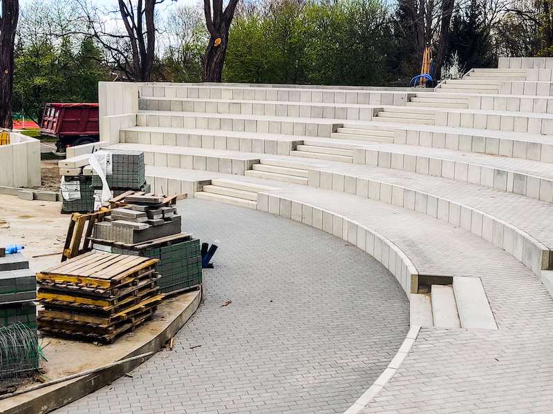 - Remont przeszły pomieszczenia znajdujące się pod sceną. Ułożone są w większości także trybuny oraz schody. Na swoim miejscu widzimy już nowy, niewielkie budynek (pośrodku sceny), z okna którego wyświetlane będą mogły być filmy - informuje Andrzej Kus, rzecznik miasta ds. komunalnych i ochrony środowiska. - Rozebrany został gigantyczny betonowy ekran. Wymagał tego jego stan techniczny. Zastąpi go zupełnie nowy, podobnych rozmiarów. W drewnianej konstrukcji znajdzie się stalowe wypełnienie. Do tej pory brakowało w pobliżu miejsc parkingowych i to się zmieni. Amfiteatr zyska nowe oświetlenie. Pojawią się też dodatkowe nasadzenia.