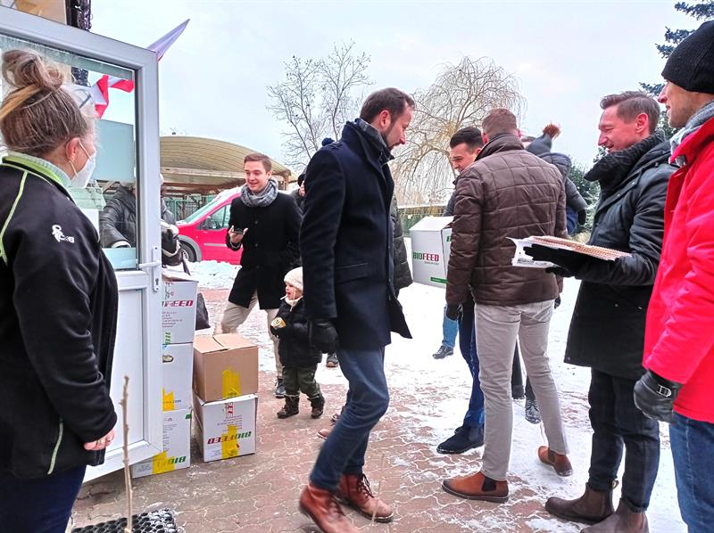Działacze zachodniopomorskiej PO z kartonami puszek z karmą w szczecińskim schronisku dla bezdomnych zwierząt w ramach akcji przed sylwestrem pod hasłem „Pomorze Zachodnie nie strzela”. Fot. Mirosław WINCONEK