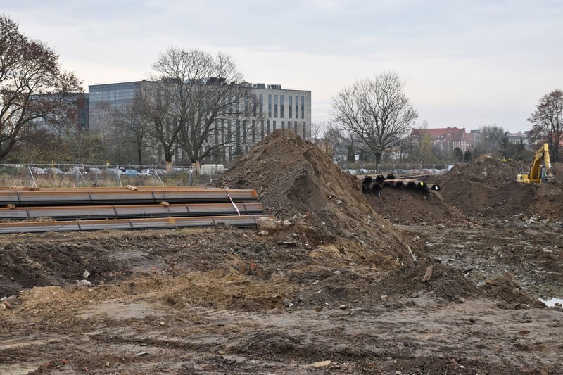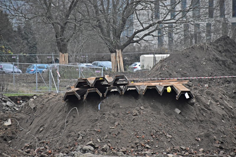 – Dzięki nim można było przystąpić do robót budowlanych. Te w głównej mierze skupiły się na terenie, gdzie stanie budynek z częścią basenową. Odhumusowano (usunięto warstwy ziemi – przyp. red.) ten teren, zabezpieczono wykop poprzez wwbirowywanie ścianki szczelnej. Rozpoczęto także wykopy do starej niecki basenowej i przeprowadzono jej rozbiórkę. Te prace przyniosły niespodziankę w postaci odkrycia starych pali drewnianych – informuje Piotr Zieliński ze szczecińskiego Urzędu Miejskiego.