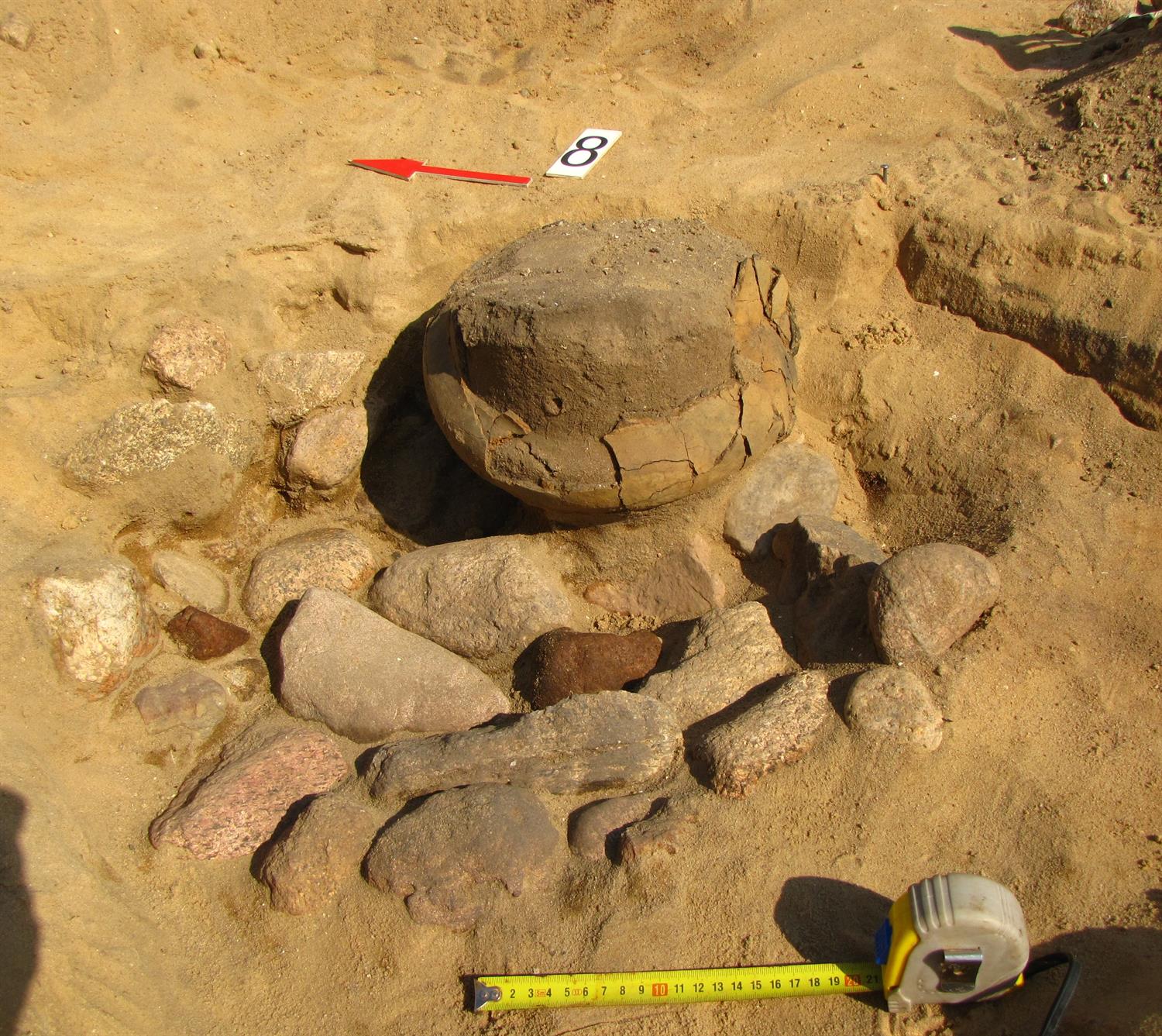 Podczas badań znaleziono między innymi miniaturowe naczynko tzw. przystawkę. Pochodzi ono z cmentarzyska ciałopalnego kultury łużyckiej w rejonie Karnieszewic, która występowała na terenie Polski w okresie między 1350/1300 pne – 500/400 pne. Światło dzienne ujrzał też fragment wykonanego z brązu miecza lub sztyletu. Pochodzi on prawdopodobnie z tzw. depozytu – złożonego intencyjnie, być może schowanego w ziemi na czarną godzinę w momencie zagrożenia, bądź dla potomnych.