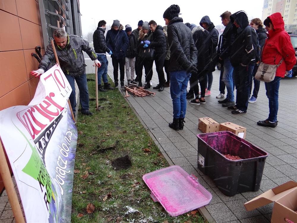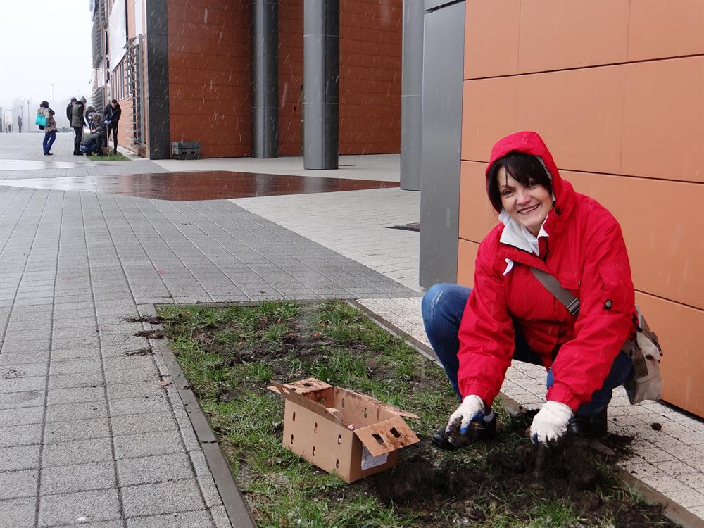 Przykład młodzieży, sadzącej krokusy na przekór zimowej aurze, zachęcił do udziału w „krokusowej rewolucji" także przechodniów. Jak Helenę Orchowską (ul. Gwarna), która na zabiegi rehabilitacyjne do Azoty Areny przywiozła przyjaciółkę.