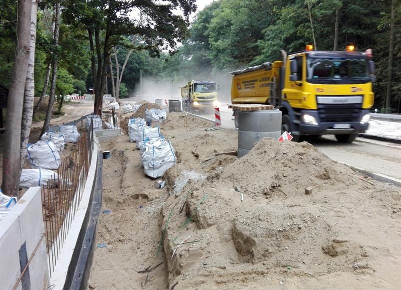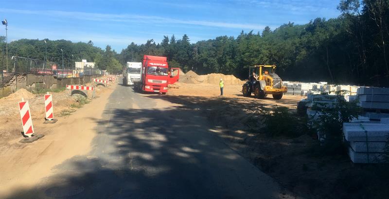 Trwa układanie instalacji podziemnych, w tym rur kanalizacyjnych i magistrali wodociągowej po obu stronach fragmentu ul. Arkońskiej od pętli tramwajów linii 3 i 10 do skrzyżowania z ostrym zakrętem przy ul. Międzyparkowej. Ponadto w tym tygodniu pojawił się tam ciężki sprzęt, którym do połowy szerokości zrywana jest stara nawierzchnia jezdni. A koparki po sąsiedzku szykują grunt pod nowy ślad drogi od strony lasu, gdzie naprzeciwko stadionu ma powstać parking.