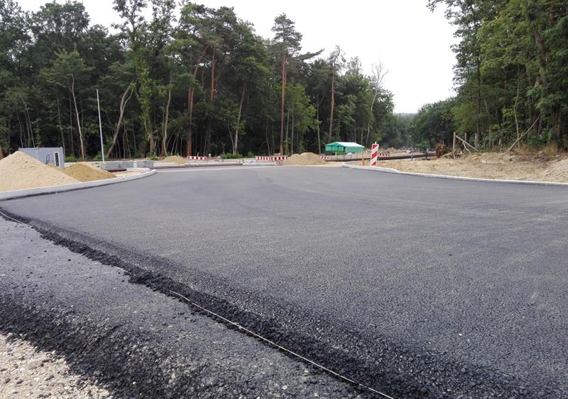 Pierwsze odcinki szyn obu torów nowej trasy tramwajów budowanej wzdłuż ul. Arkońskiej są już na swoim miejscudni od kilku tygodni. Osadzone zostały na 30-centymetrowej warstwie betonowej wylewki. W rejonie powstającego ronda u zbiegu z al. Wojska Polskiego, po wyznaczeniu i wykonaniu podbudowy nowej jezdni, trwają teraz prace przy układaniu chodnika od strony lasu. A to ledwie część robót. Na łuku ronda i fragmentach jezdni samej al. Wojska Polskiego w kierunku Głębokiego (od toru kartingowego do wysokości kortów tenisowych i toru kolarskiego) wylana została w ostatnich dniach warstwa wiążąca asfaltu.