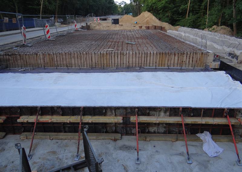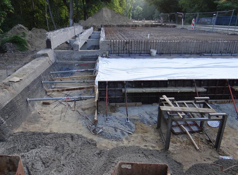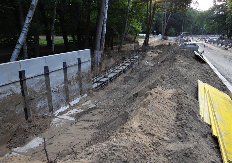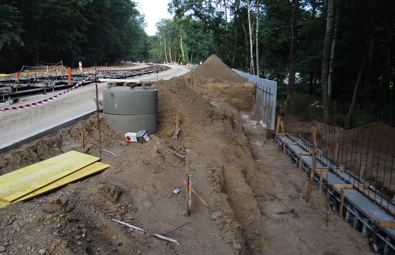 Równolegle wzmacniania jest konstrukcja wiaduktu, w jego okolicy ułożony został też kabel oświetleniowy. Kontynuowane są roboty przy uzbrojeniu podziemnym, w tym instalacjach deszczowej i sanitarnej, budowie nowej magistrali wodociągowej i kanalizacji teletechnicznej. Z tymi pracami drogowcy dotarli także w rejon na wysokości przyszłego parkingu naprzeciwko stadionu Arkonii i dalej w kierunku pętli Las Arkoński. Trwają też prace przy fundamentach pod słupy trakcji zasilania tramwajów.
