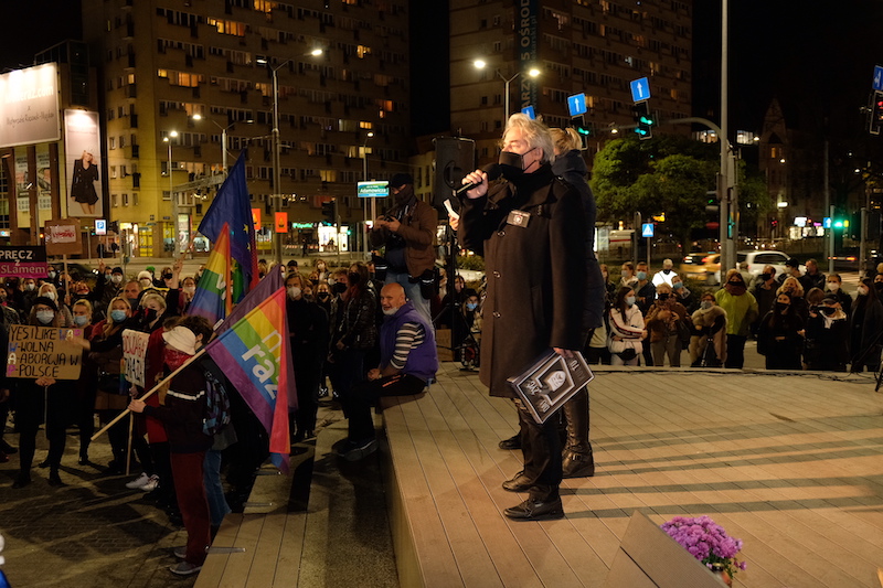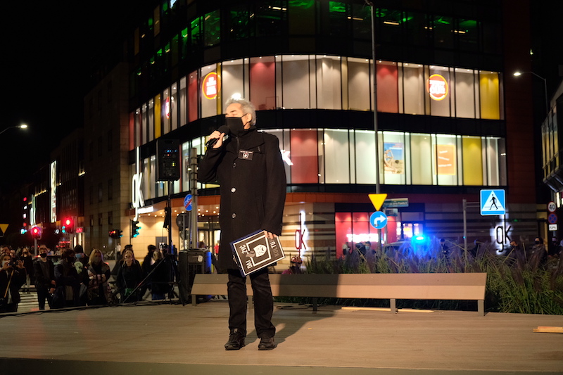 - Czy zauważyliście, że w świecie PiS-u nie ma sztuki, nie ma kultury, muzyki, książek, artystów, aktorów, twórców, ludzi wybitnie uzdolnionych, cenionych i nagradzanych prestiżowymi nagrodami, ludzi pogodnych i pięknych duchem? Ale jest Zenek! Nie mam nic przeciwko Zenkowi Martyniukowi, bo on ma swoich odbiorców, ale nie może być jedynym źródłem kultury w Polsce. A bez kultury nie ma narodu - mówił Jakub Gwit z Teatru Rozmaitości Gwitajcie podczas poniedziałkowego (2 listopada) protestu środowisk artystyczno-kreatywnych na placu Adamowicza w Szczecinie.