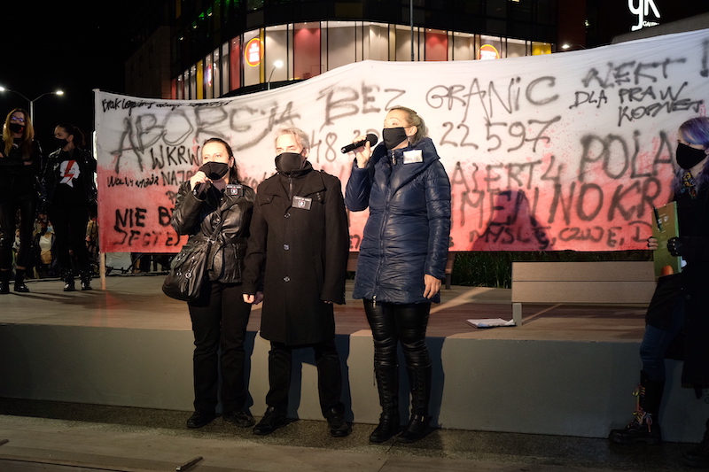 Na koniec protestu, aktorki teatru Gwitajcie zaśpiewały utwór duetu - Kayah i Viki Gabor, pt. "Ramię w ramię", który zabrzmiał już na wielu demonstracjach w Polsce. Jest to nieco przerobiona wersja, której autorką jest sama Kayah. Otóż podczas finału "Tańca z gwiazdami", w transmisji na żywo, obie wokalistki odśpiewały swój wspólny hit ze zmodyfikowaną treścią refrenu. Słowo "tańczyć" zastąpiono wyrazem "walczyć", przez co tekst zyskał nowe, symboliczne znaczenie: "Bo żadna dama nie będzie walczyć sama, gdy sióstr tyle ma, gdy jest pośród nas, więc moja miła walcz!”.