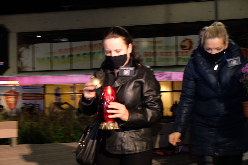 - Planowaliśmy dzisiaj marsz środowisk artystycznych i kreatywnych. Chcieliśmy pójść na cmentarz, by zapalić znicze na grobach szczecińskich twórców. Nie możemy tego zrobić, dlatego zróbmy to teraz i utwórzmy taki mały kondukt - mówi aktor. - Mam tu klepsydrę o treści: "Z głębokim żalem informujemy, że w wyniku długotrwałej choroby zakaźnej, zmarła śmiercią głodową POLSKA KULTURA. Na zawsze pozostanie w naszej pamięci. Zrozpaczeni Polacy".