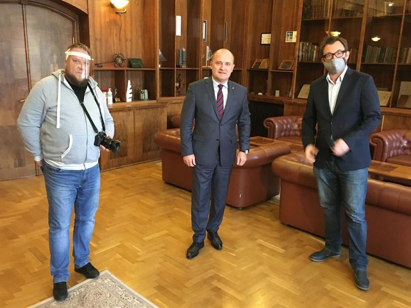 Od lewej: Krzysztof Baranowski, prezydent Piotr Krzystek oraz Marcin Jarczyński, który poprowadzi koncert (wraz z Marią Radoszewską)