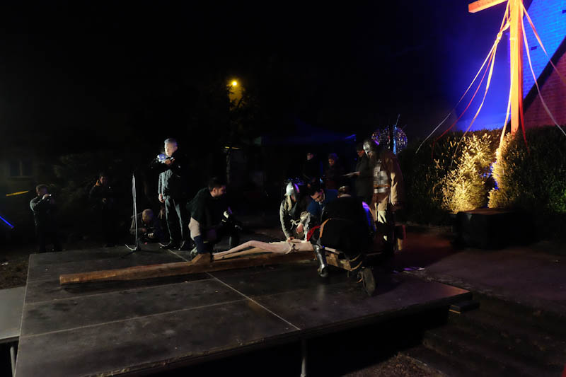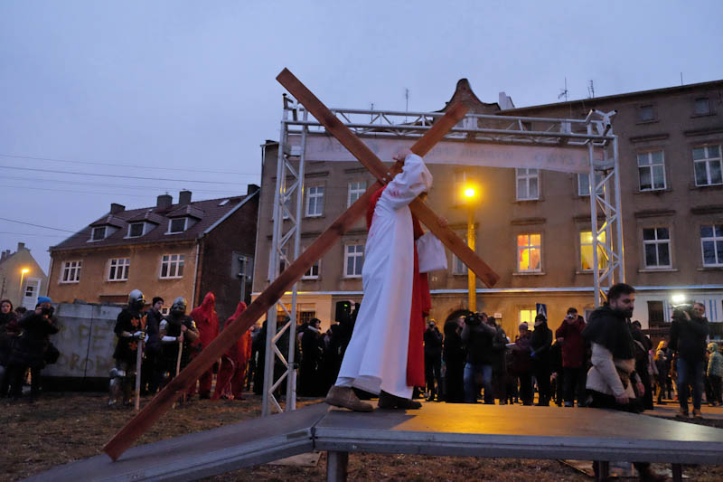 W przedsięwzięcie zaangażowanych było ponad sto osób. To społeczność lokalna, włącznie z uczniami tutejszych szkół i podopiecznymi Młodzieżowego Ośrodka Wychowawczego im. Janusza Korczaka, a także artyści - muzycy, aktorzy, tancerze. Artystyczne inscenizacje drogi krzyżowej na Skolwinie maja długą tradycję, odbywają się od 2005 roku. Są dla uczestników i widzów bardzo szczególnym przeżyciem duchowym i artystycznym. Jak mówi Marek Maj, scenarzysta i reżyser widowiska, nie opiera się ono tylko na odwzorowaniu ewangelicznych zdarzeń, ale dodaniu przesłań i nadsensów.