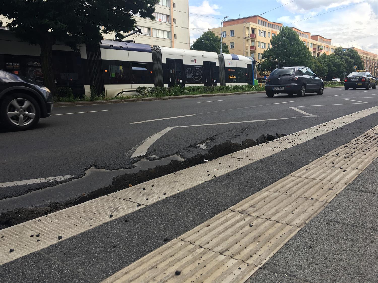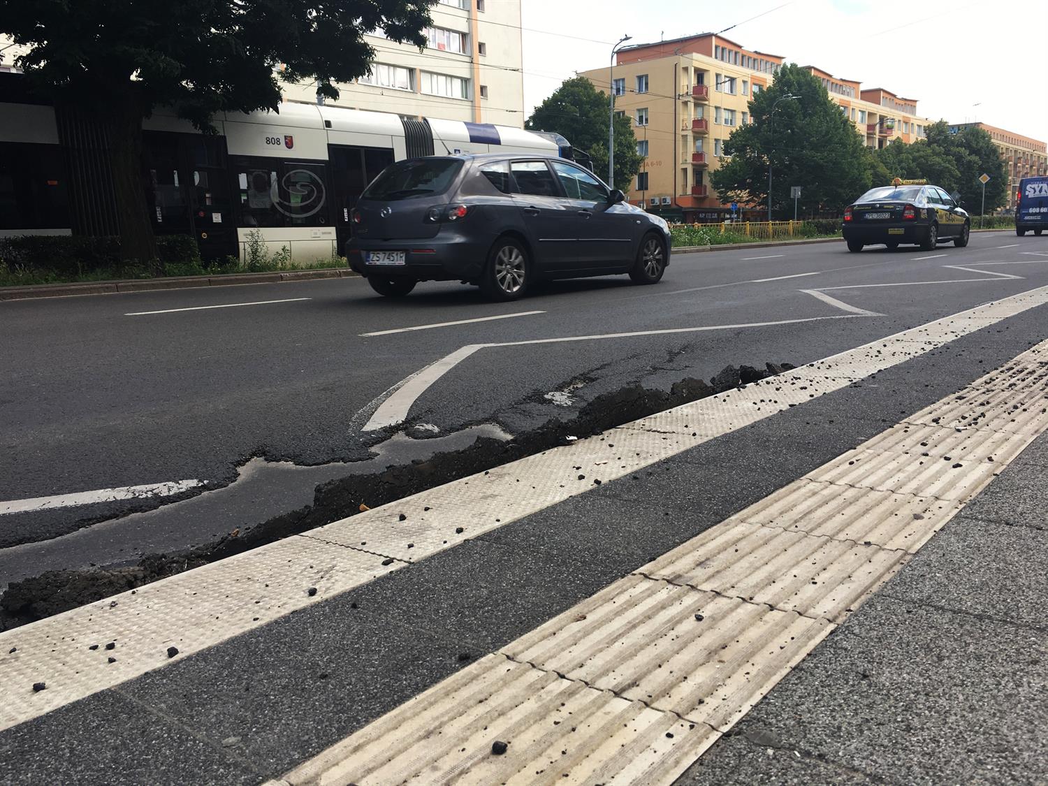 O zdemolowanej, choć nowej, bo wymienianej raptem kilka miesięcy temu (w listopadzie 2016 r.), nawierzchni na jezdni przebudowanego odcinka al. Wyzwolenia w Szczecinie między pl. Rodła i ul. Mazowiecką, pisaliśmy już w czwartek (6 lipca). Stan – jak widać zarówno na zdjęciach sprzed ponad tygodnia, jak i z minionego piątku – pozostawał do minionego weekendu bez zmian.
