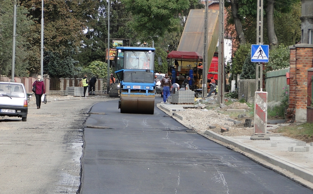 Trwa przebudowa ulicy Szczecińskiej w Gryfinie. Dziś na jednym pasie położono warstwę wyrównawczą asfaltu, jutro prace te wykonane zostaną na drugim pasie jezdni. Na poniedziałek i wtorek zaplanowano położenie zewnętrznej, ścieralnej warstwy asfaltu. Do zakończenia prac na tym odcinku pozostanie jeszcze namalowanie znaków poziomych na jezdni i remont chodników.