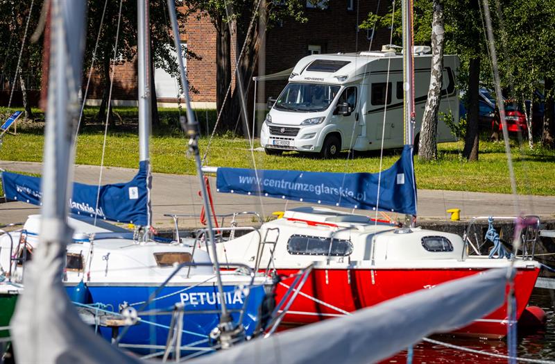 Od tego sezonu Centrum Żeglarskie przy ul. Przestrzennej w Szczecinie udostępnia także miejsca postojowe dla kamperów. Podróżujący tymi turystycznymi pojazdami mogą skorzystać z miejsc postojowych na marinie Centrum Żeglarskiego. Plac z przyłączami elektrycznymi oraz dostępem do wody pomieści do 14 kamperów. Postój zlokalizowany jest w sąsiedztwie masztu i placu apelowego, tuż za budynkiem administracji. Korzystający z miejsc postojowych w ramach opłaty otrzymują nie tylko miejsce, ale także dostęp do kuchni, toalet, zrzutu wody szarej oraz nieczystości. Za dodatkową opłatą mogą skorzystać także z natrysków.