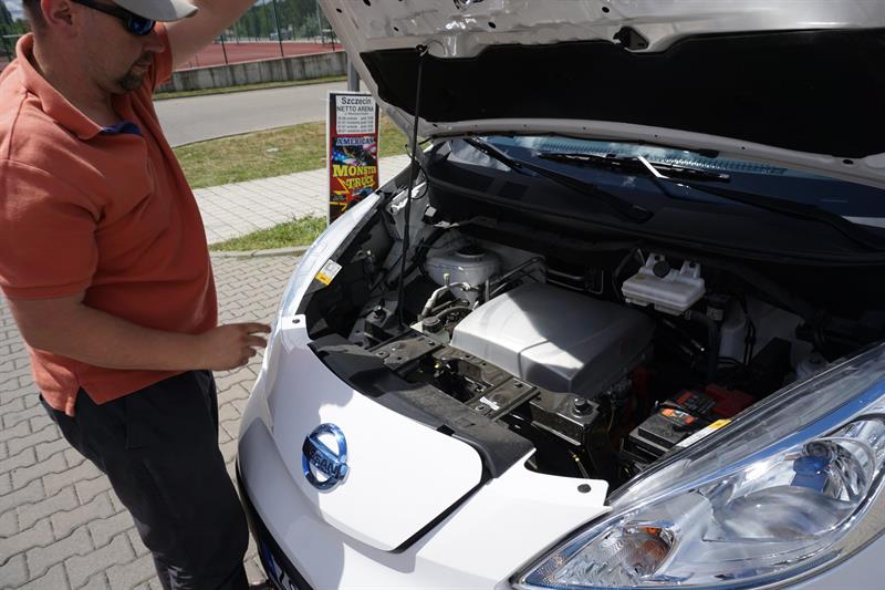 - Na jednym ładowaniu można przejechać 150 kilometrów. W aucie osobowym dystans jest większy, bo pojazd jest lżejszy - tłumaczy p. Tomasz. - Samochód ma dwa gniazda ładowania: na 230 wolt i do szybkiego ładowania. Jeżeli korzystamy z gniazda 230 wolt, to trwa to całą noc noc. Natomiast szybkie ładowanie ok. 30-40 minut i baterię naładujemy do 80 procent.