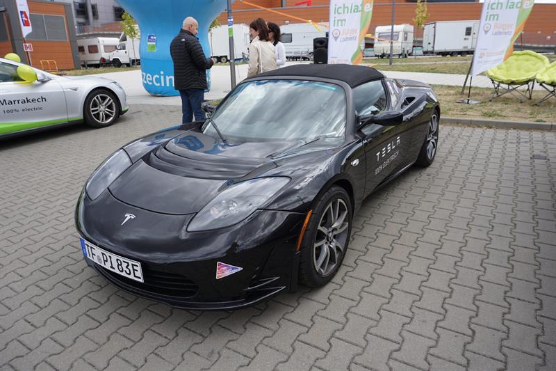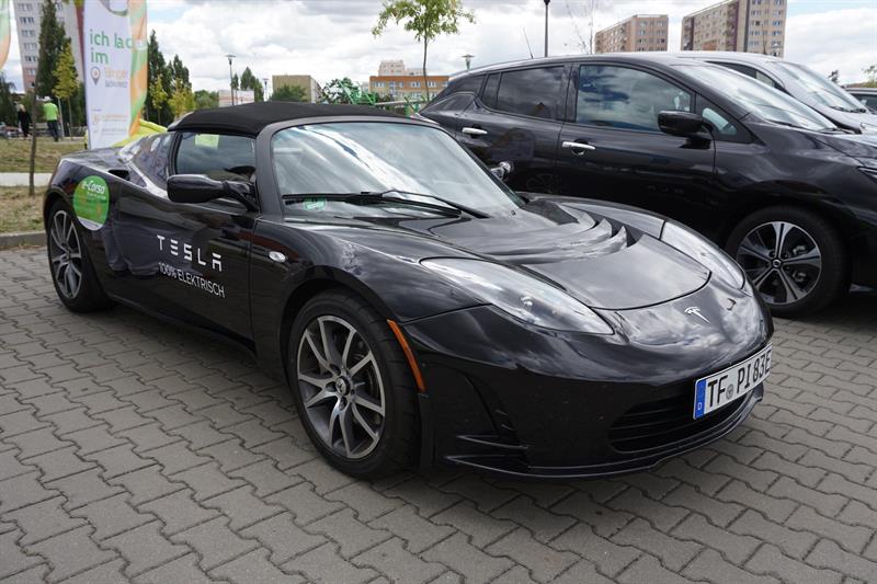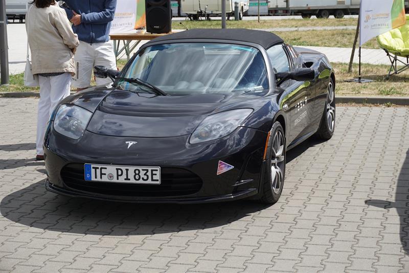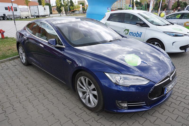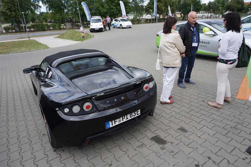 Na placu zaparkowały m.in. trzy samochody marki Tesla - w tym dwa modele S - oraz roadster, nissan leaf, nissan e-NV 200 (minibus), bmw eDRIVE, smart, renault zoe.