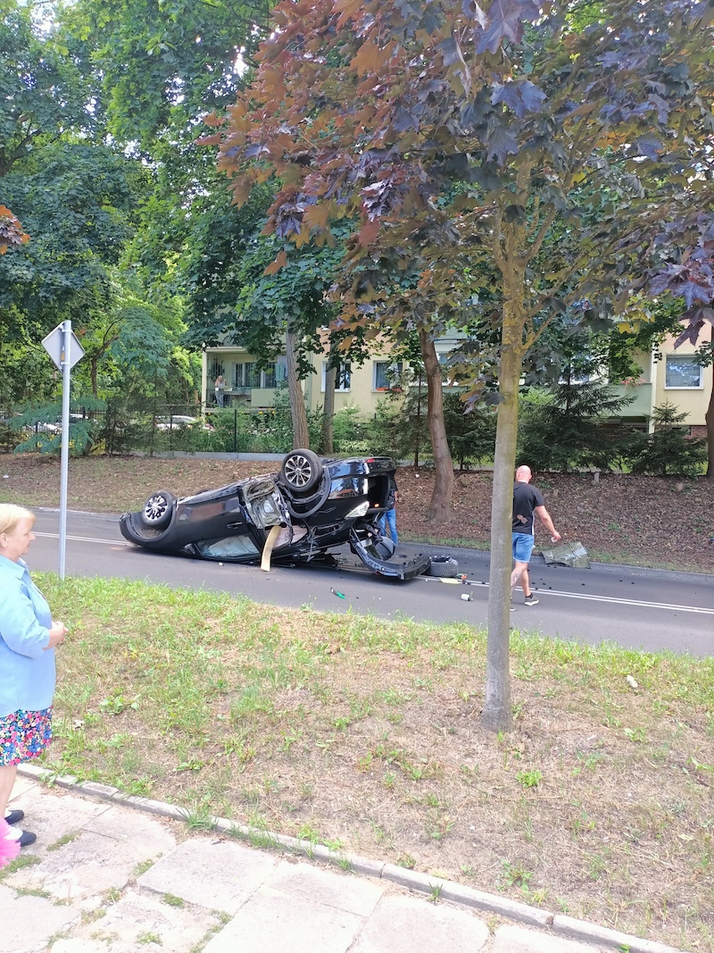 W Szczecinie na ul. Mącznej ok. 15.30 dachował samochód. W aucie był tylko kierowca, 35-latek. Jak poinformowała policja, wstępne badania wykazały, że kierowca był pod wpływem alkoholu. W wydychanym powietrzu miał ponad 1,5 promila.