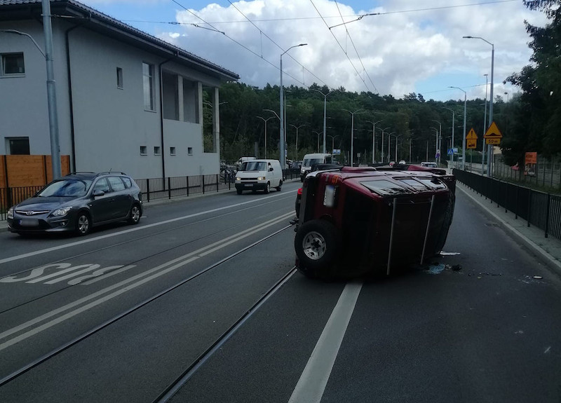 - W tym zdarzeniu drogowym nie ma osób poszkodowanych - informuje sierż. szt. Paweł Pankau z Komendy Miejskiej Policji. - Jednak przejazd ul. Arkońską w kierunku szpitala jest utrudniony. Straż pożarna stawia auto na koła, trwają także czynności policji.