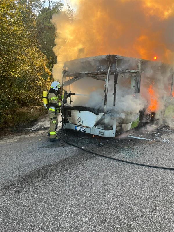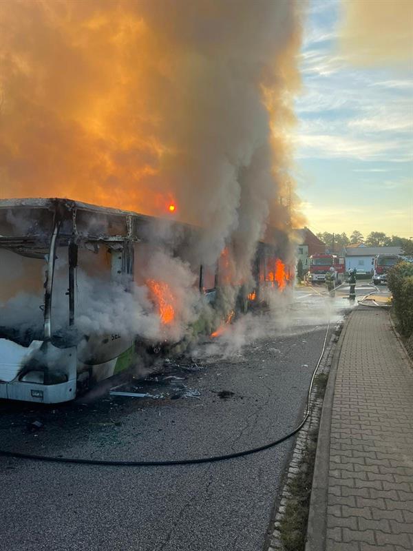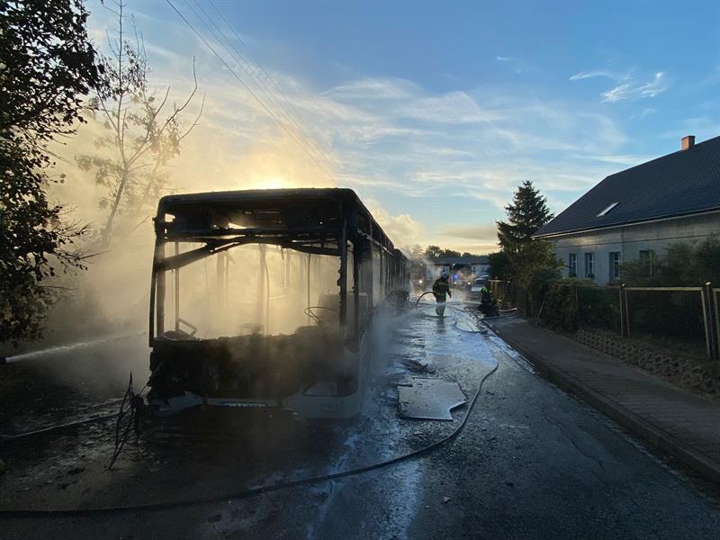 Mercedes, który spłonął doszczętnie, należał do jednego z niemieckich przewoźników wykonujących przewozy na komunikacji zastępczej w zamian za zawieszone pociągi.