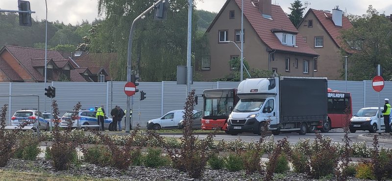Do zderzenia samochodu osobowego z autobusem doszło w środę rano na rondzie w Podjuchach.
